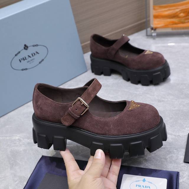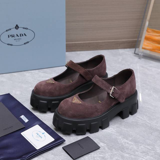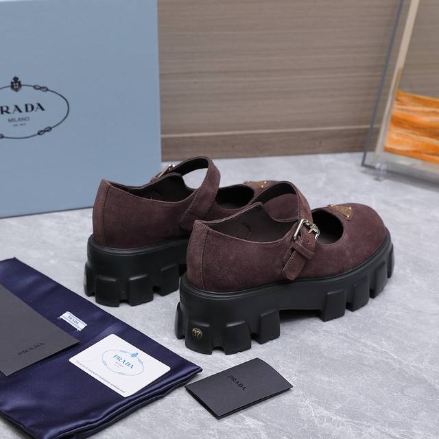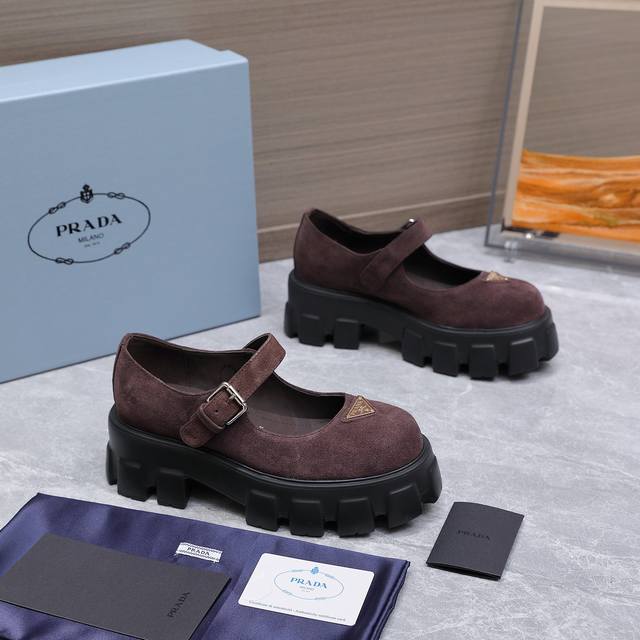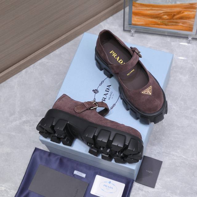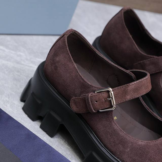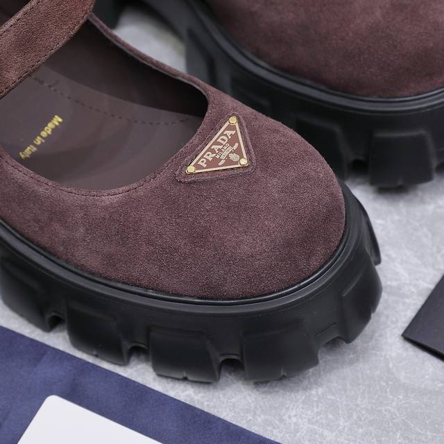 高版本 Prad* 普拉达25Ss新款厚底玛丽珍单鞋 复古时髦前卫的轮齿厚底鞋底搭配牛皮鞋面让整双鞋轻便舒适 鲜艳色彩 满足不同风格时髦人士的多种选择!标志性L