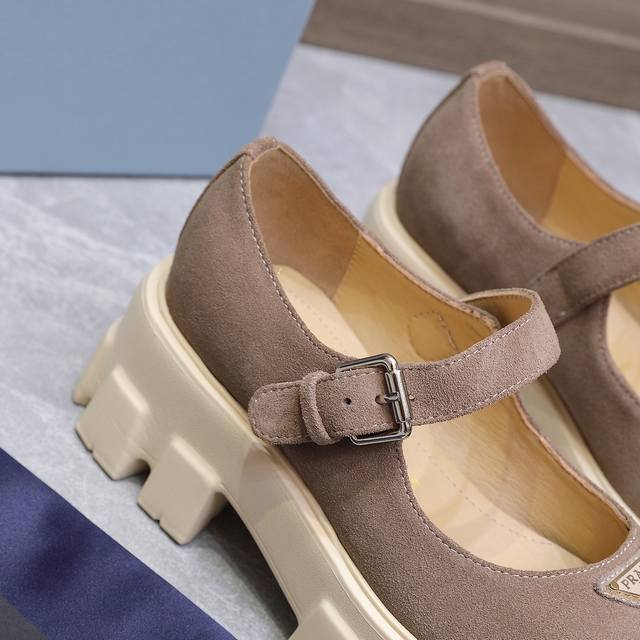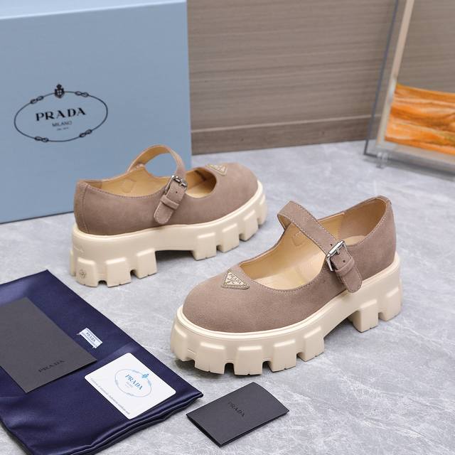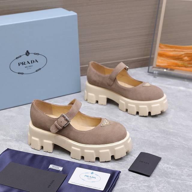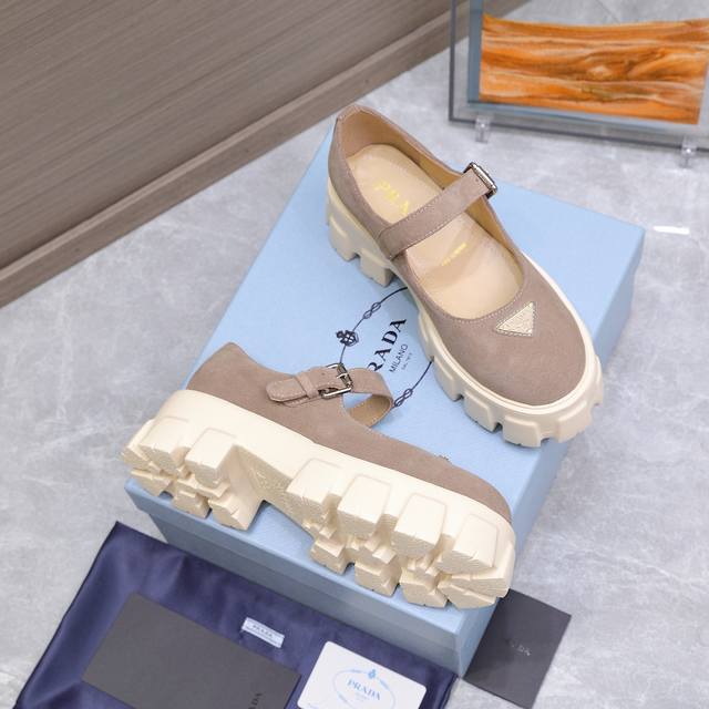 / 高版本 Prad* 普拉达25Ss新款厚底玛丽珍单鞋 复古时髦前卫的轮齿厚底鞋底搭配牛皮鞋面让整双鞋轻便舒适 鲜艳色彩 满足不同风格时髦人士的多种选择!标志性L