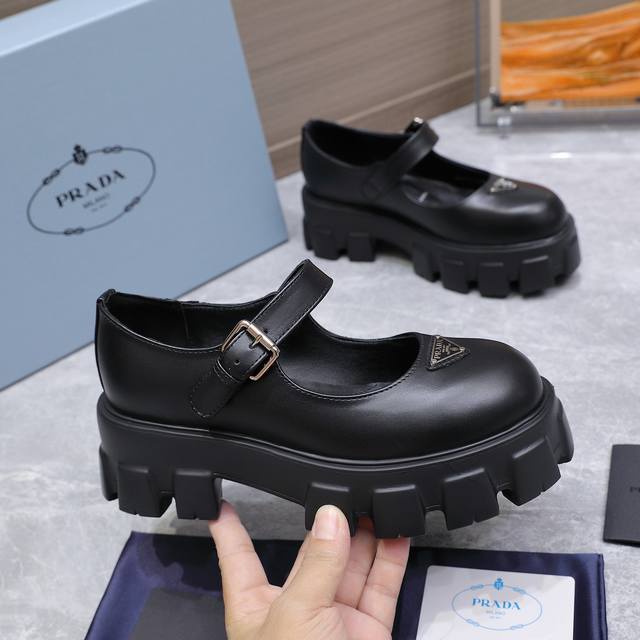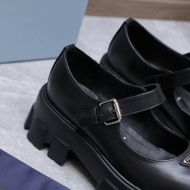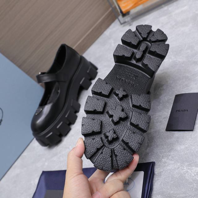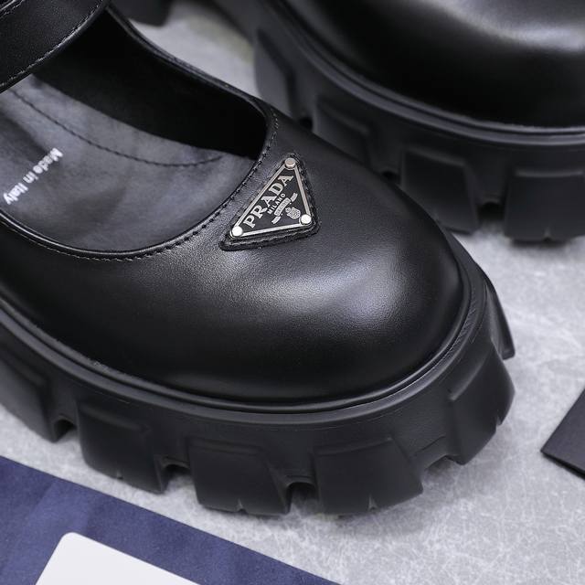 高版本 Prad* 普拉达25Ss新款厚底玛丽珍单鞋 复古时髦前卫的轮齿厚底鞋底搭配牛皮鞋面让整双鞋轻便舒适 鲜艳色彩 满足不同风格时髦人士的多种选择!标志性L