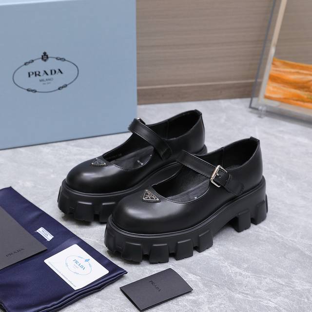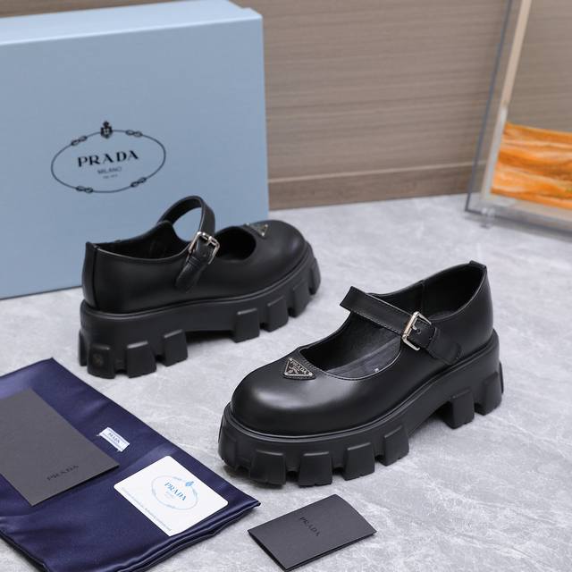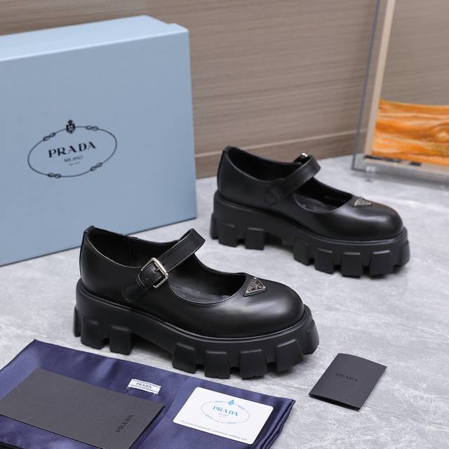 / 高版本 Prad* 普拉达25Ss新款厚底玛丽珍单鞋 复古时髦前卫的轮齿厚底鞋底搭配牛皮鞋面让整双鞋轻便舒适 鲜艳色彩 满足不同风格时髦人士的多种选择!标志性L