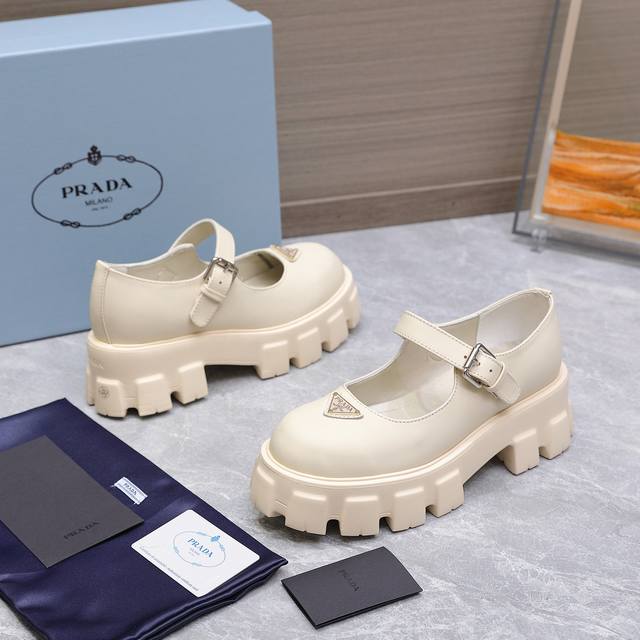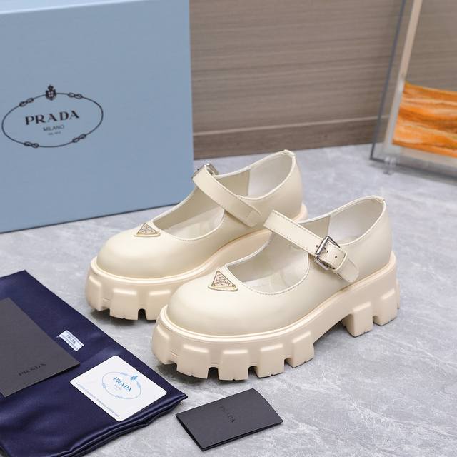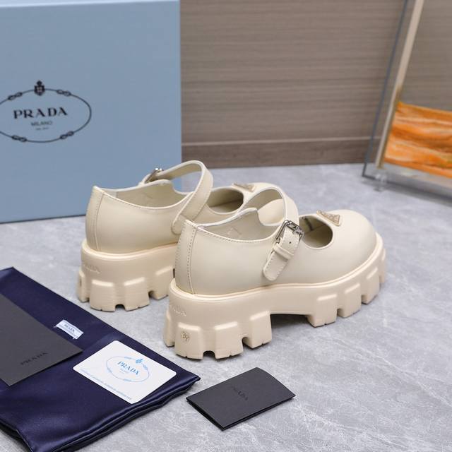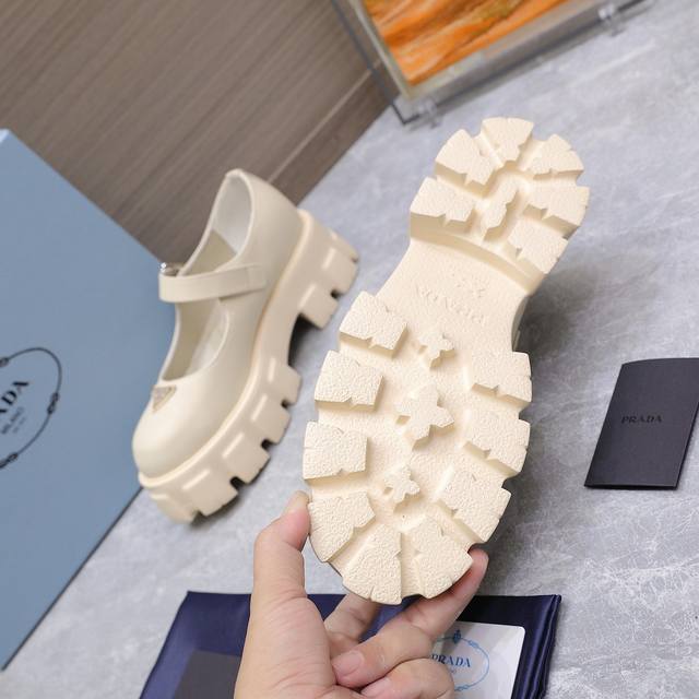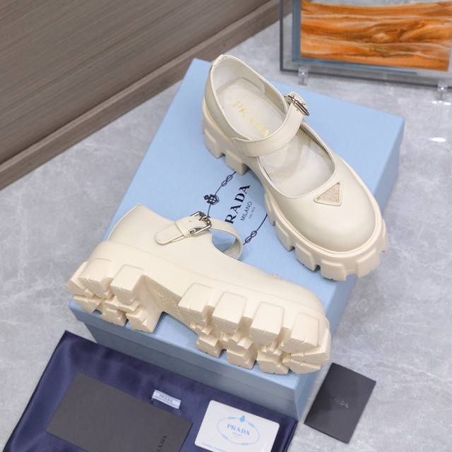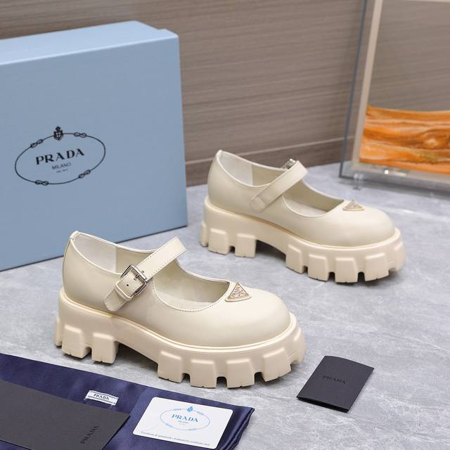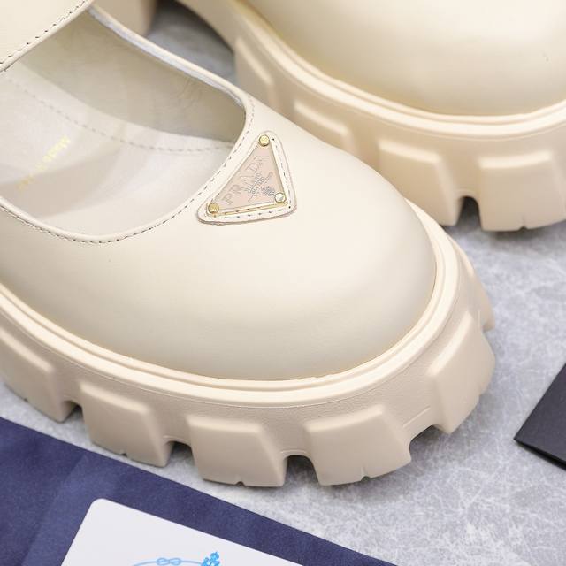 / 高版本 Prad* 普拉达25Ss新款厚底玛丽珍单鞋 复古时髦前卫的轮齿厚底鞋底搭配牛皮鞋面让整双鞋轻便舒适 鲜艳色彩 满足不同风格时髦人士的多种选择!标志性L