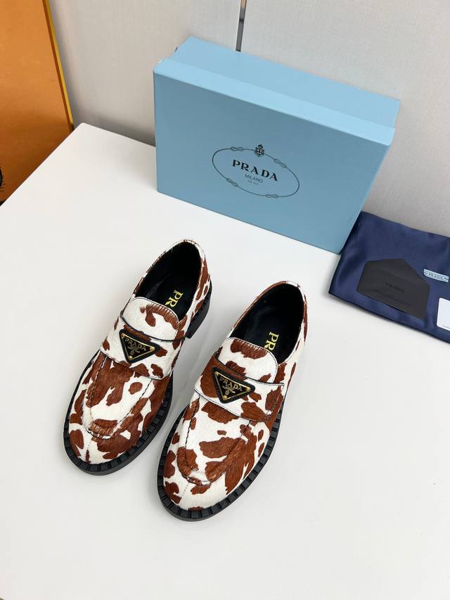 2025普拉达新款奶牛配色乐福鞋