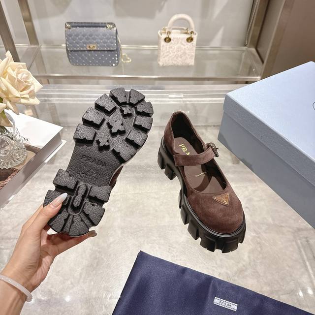 / 2025最新款Prada 标志性Monolith鞋履的几何设计和大胆廓形为此款玛丽珍鞋赋予全新风格。混搭风格的鞋履结合经典线条和大胆细节,灵感源自 Prada美