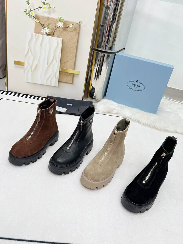 / 2025prada普拉达新款经典三角标前拉链女靴 绝对的大爆款!厚底前拉链,上脚大气显腿瘦气质这块刚好拿捏,全系列采用多种进口材料:顶级小牛皮,高丝光牛反绒,