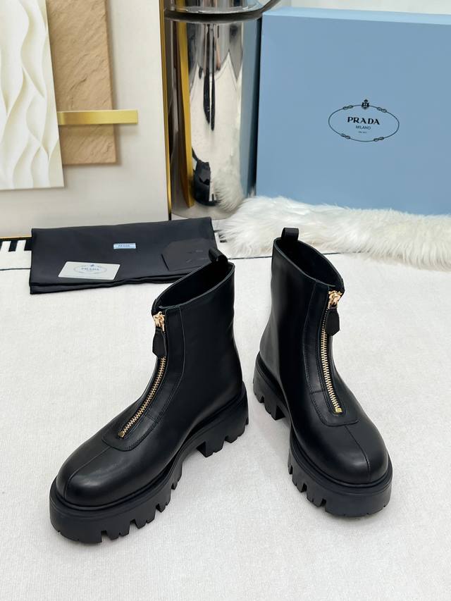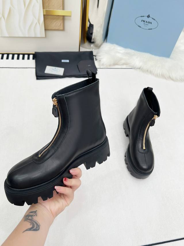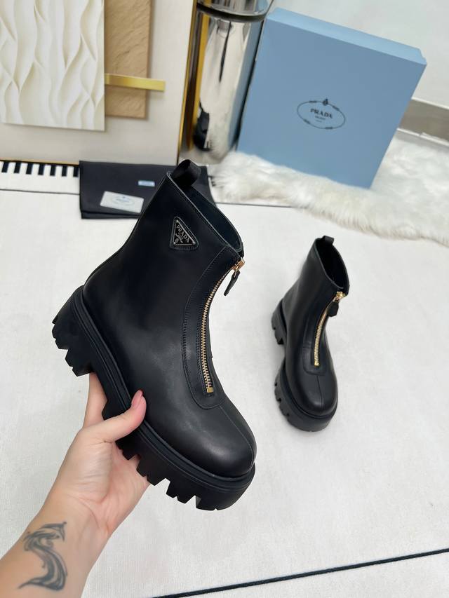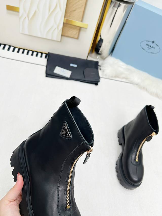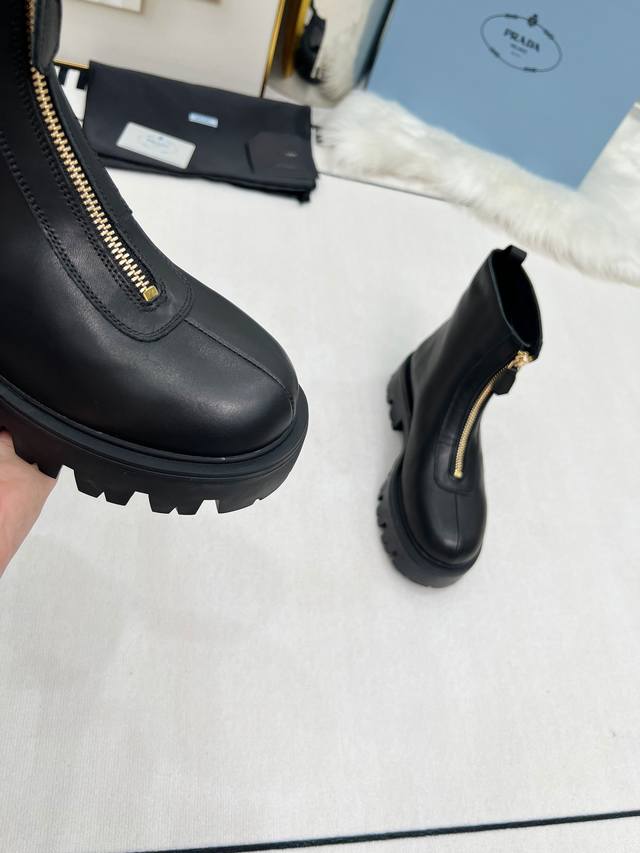 2025prada普拉达新款经典三角标前拉链女靴 绝对的大爆款!厚底前拉链,上脚大气显腿瘦气质这块刚好拿捏,全系列采用多种进口材料:顶级小牛皮,高丝光牛反绒, DDD 内里水染牛里皮,尺码:35-40 41定做 。 DDD