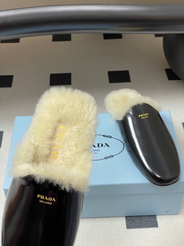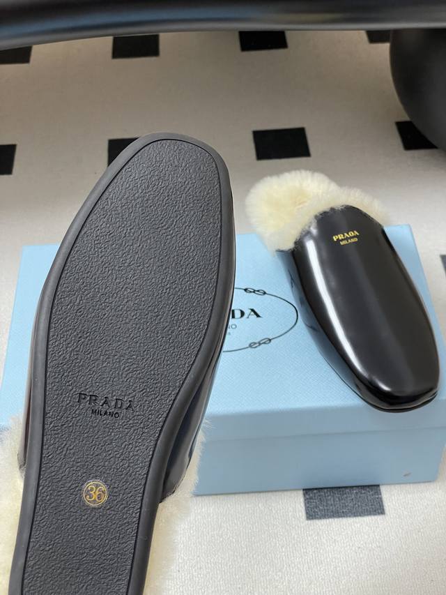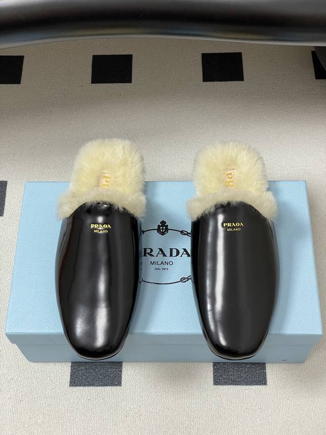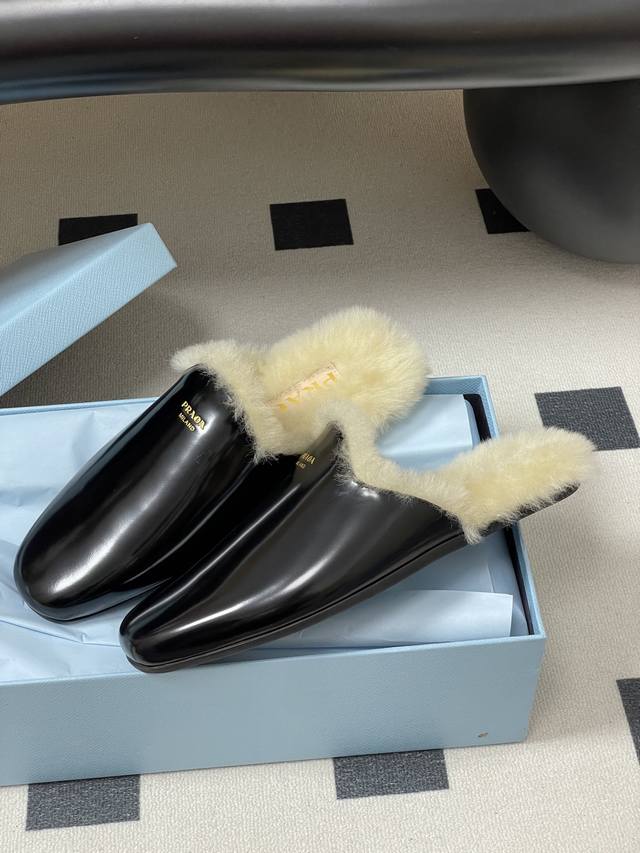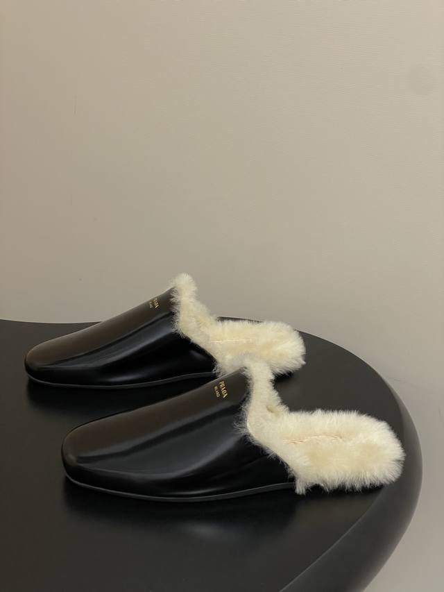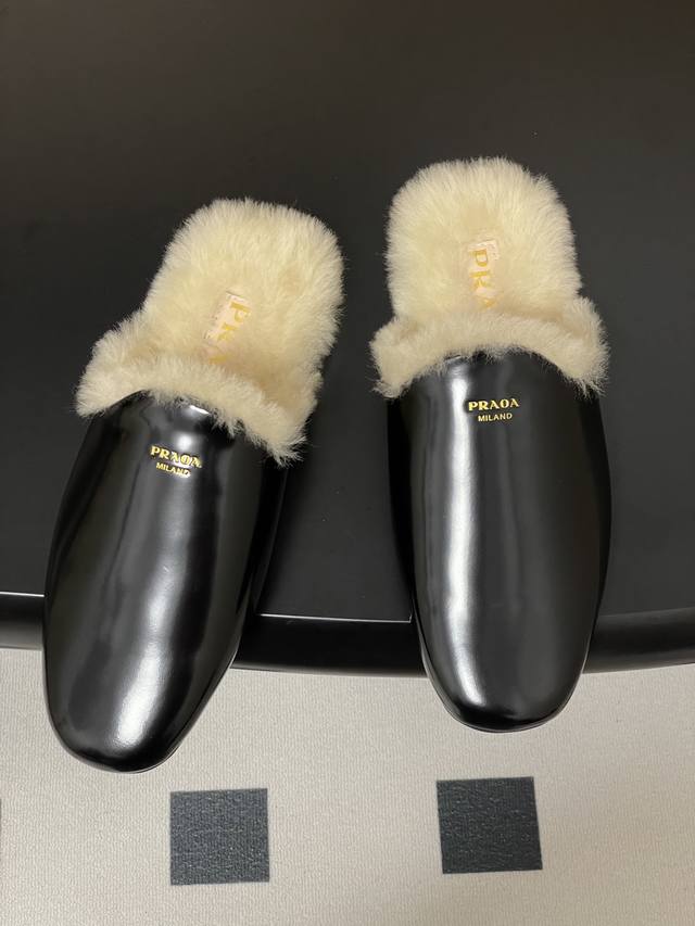 25Aw秋冬新款Prada普拉达方圆头穆勒鞋麂皮绒面羊毛半拖鞋 这款自然优雅的穆勒鞋采用亮面皮革鞋面搭配饰以徽标的简约鞋底,打造对比鲜明的效果,提升格调。 融合了奢华质感与舒适休闲感,鞋面采用高级皮革 麂皮材质,鞋口处的毛绒设计既增添了温暖的视觉效果,又提升了穿着的舒适体验,鞋身的Prada品牌标识彰显品牌格调,整体呈现出复古又时尚的轻奢风格。 作为穆勒鞋,穿着方便易穿脱;毛绒材质在秋冬季节能提供一定的保暖性,适合室内外短时间穿着,兼具美观与实用性。 鞋面:开边珠牛皮 牛反绒 内里垫脚:羊毛 鞋底:开模橡