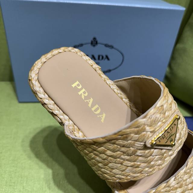 prada Ss25 New Arrival~ P家拉菲草厚底拖鞋 夏季跟拉菲草很搭啊,穿着舒适柔软透气,质感慵懒惬意,超Nice的 Size 35-41
