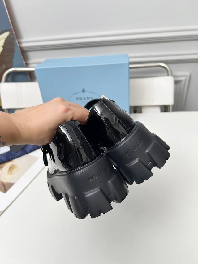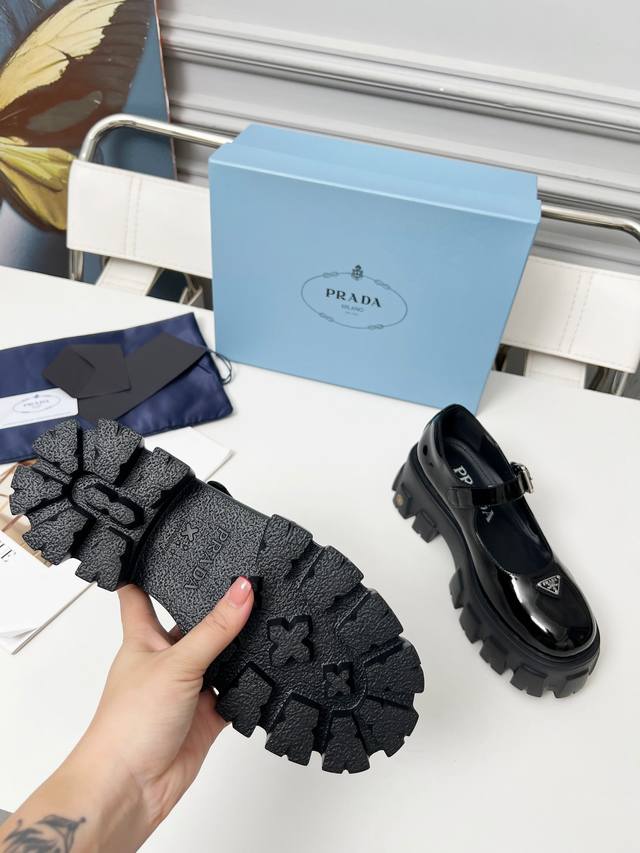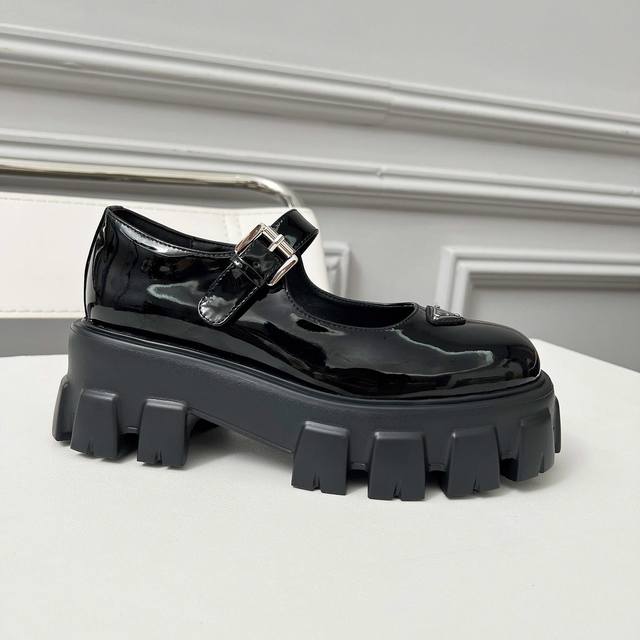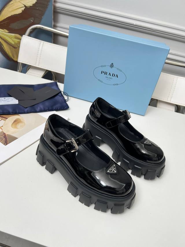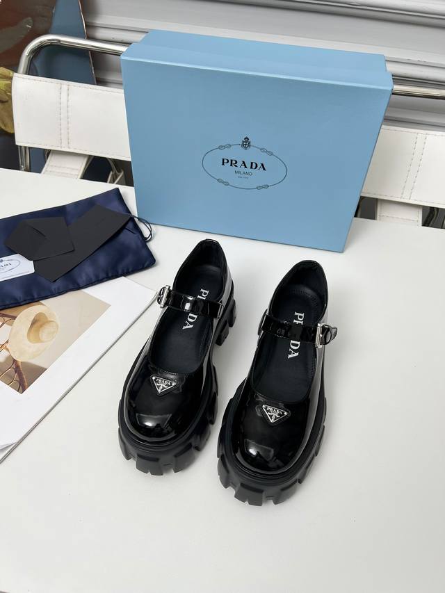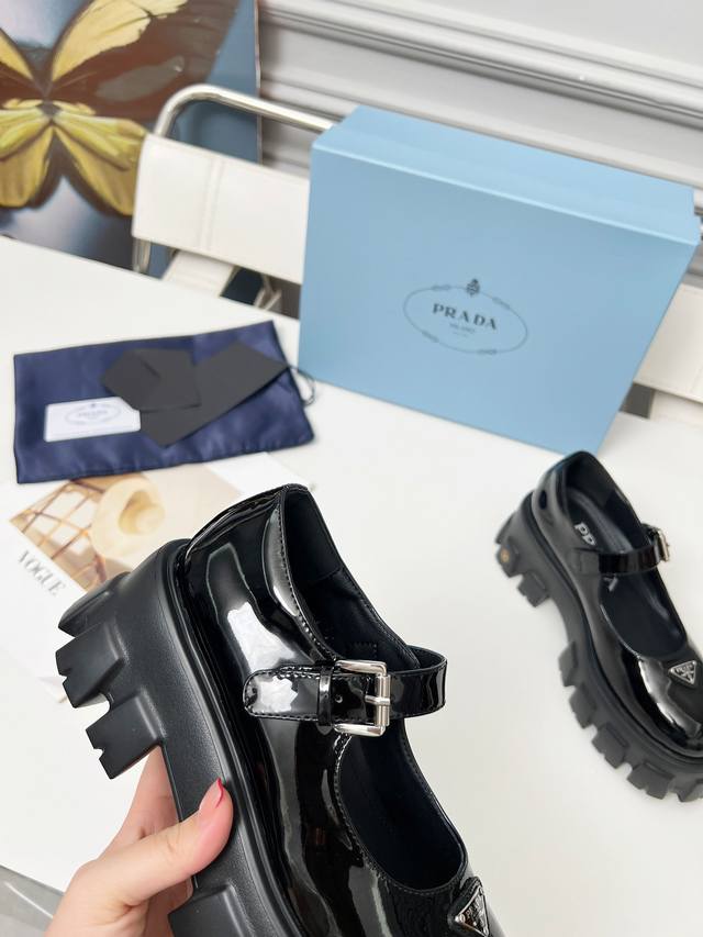 25Ss Prada新款厚底马丽珍鞋** 秋冬爆款来袭!上脚瞬间拉长比例,5.5Cm跟高舒适显瘦,**小个子也能穿出超模腿**! **进口牛皮面料** + **