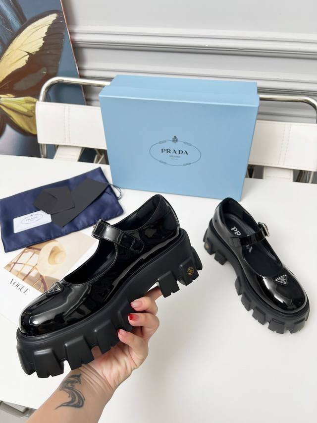 25Ss Prada新款厚底马丽珍鞋** 秋冬爆款来袭!上脚瞬间拉长比例,5.5Cm跟高舒适显瘦,**小个子也能穿出超模腿**! **进口牛皮面料** + **内里羊皮**,高级质感拉满 **防滑发泡底**,稳如泰山,暴走一天也不累 **1:1顶级复刻**,细节零差距,**重要场合也能轻松Hold住** **** 搭配大衣+牛仔裤 = 慵懒高级感 配小香风套装 = 名媛贵气风 搭短裙+光腿神器 = 秒变腿精 34-41码 3色供应