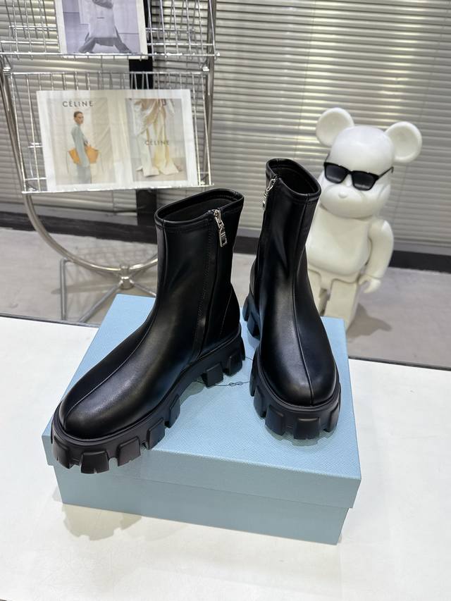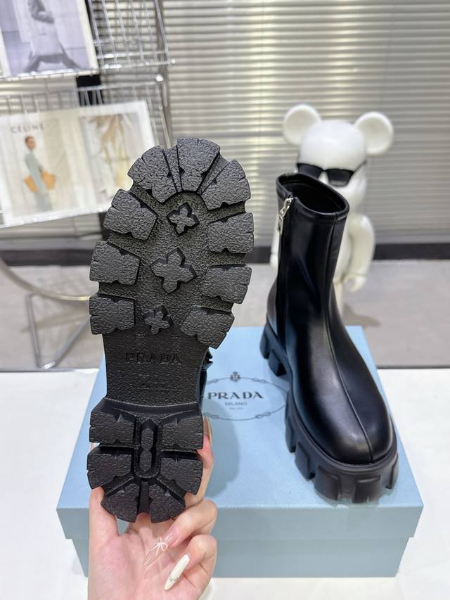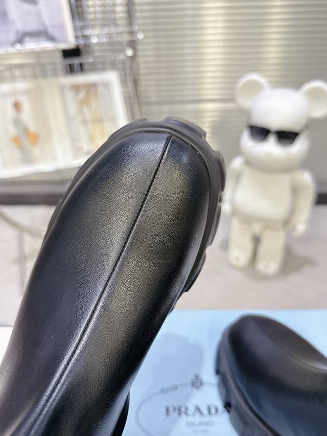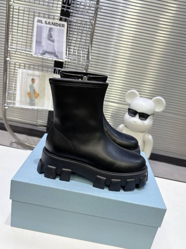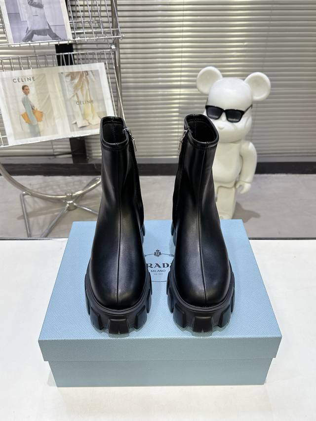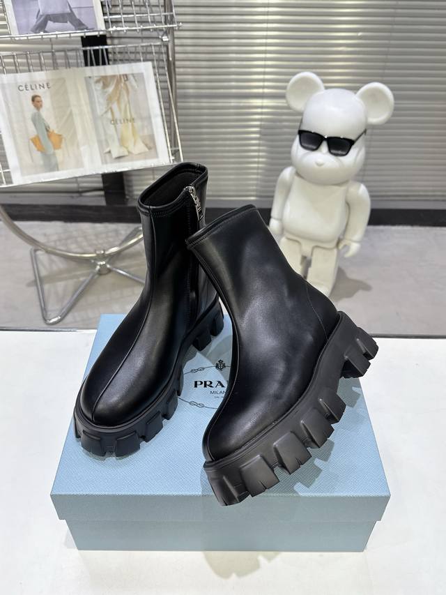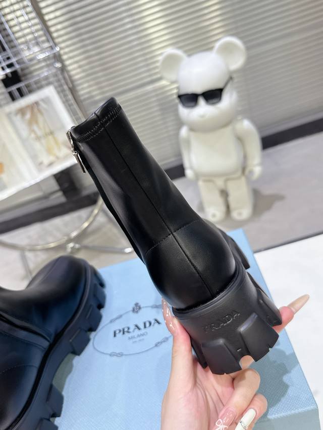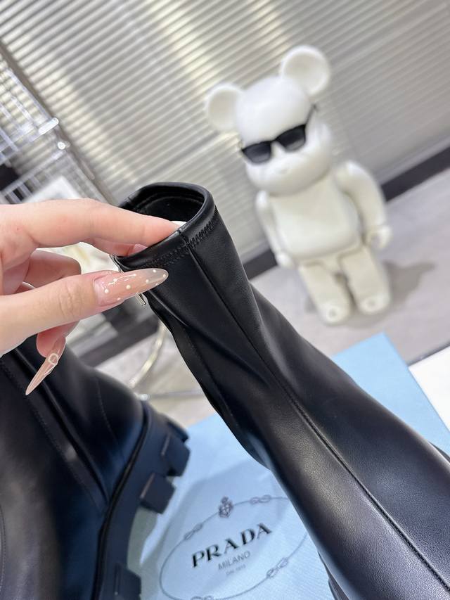 5秋冬 普拉达早春短靴弹力靴 口袋徽章袜子靴 DDD 穿起来绝美,巨显瘦 上脚妥妥的女神无疑了[福] DDD 最最主要的是非常百搭且好穿 日常聚会都可轻松驾驭 DDD 2025主打最新款短靴 DDD 侧面贴心设计小口袋时尚又有独特味道 DDD 看起来是袜套靴 但内侧有拉链 更加便于穿脱 DDD 橡胶Ip发泡超轻鞋底设计 非常显腿长 久穿不累脚 DDD 独家开模原版加密弹力靴筒 厚实又有质感 DDD 山羊皮鞋面 手感软软的特别好穿 DDD 配码 35-40 DDD