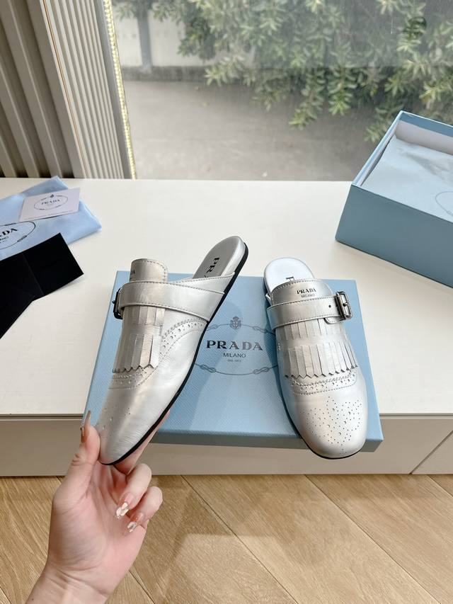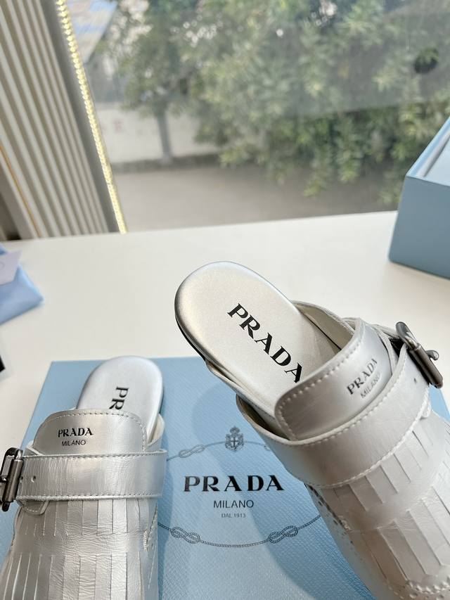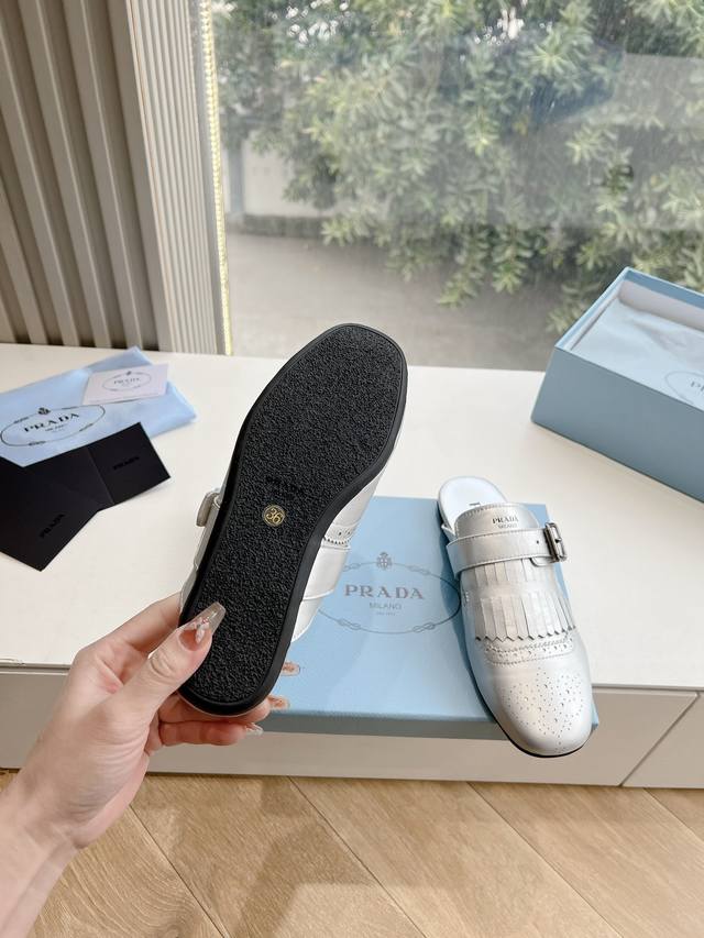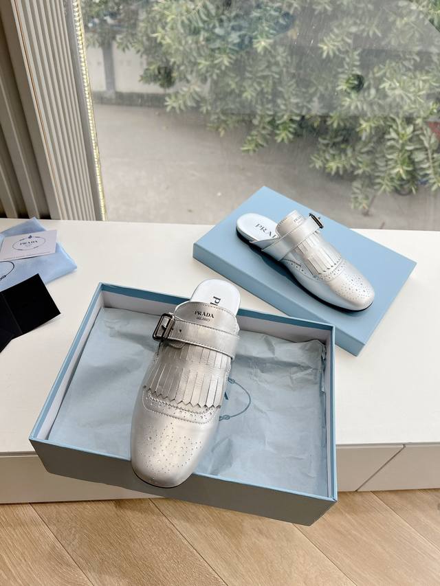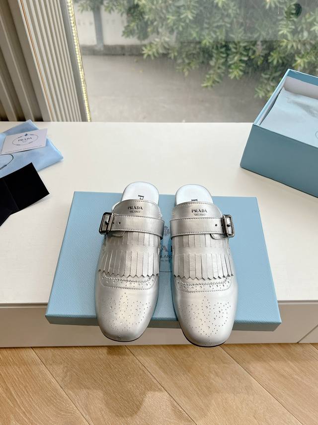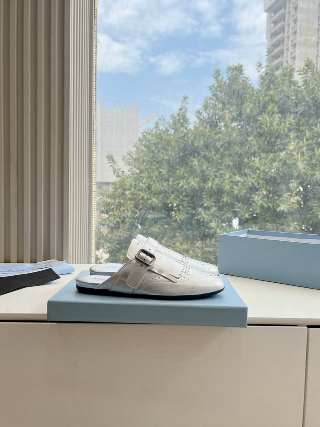 / G0286顶级品质Prad* 25Ss 普拉达走秀款复古流苏半拖鞋单鞋爆款!走秀款 复古感时髦满满 随意百搭 时尚休闲 独到味道,人人都爱也轻松驾驭 每年都会爆