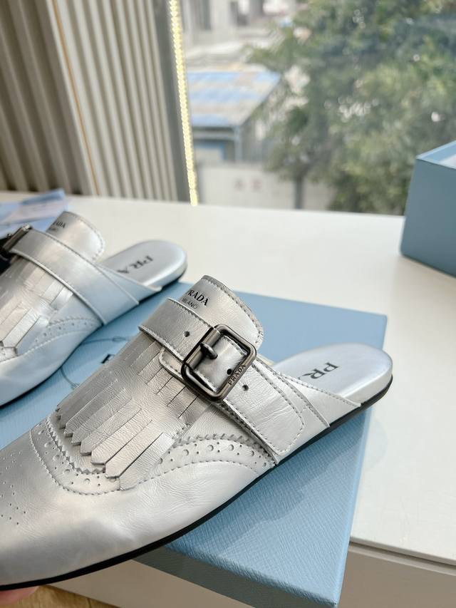 G0286顶级品质Prad* 25Ss 普拉达走秀款复古流苏半拖鞋单鞋爆款!走秀款 复古感时髦满满 随意百搭 时尚休闲 独到味道,人人都爱也轻松驾驭 每年都会爆