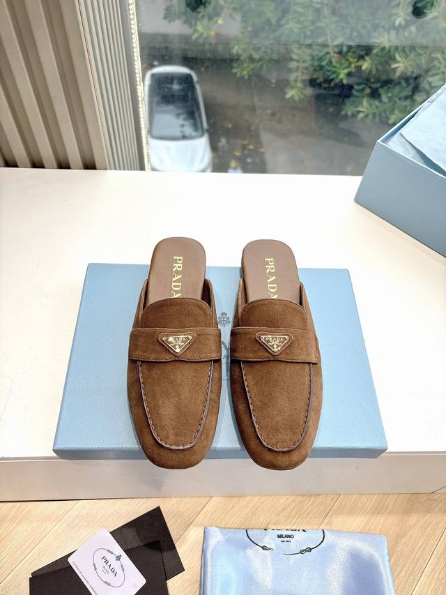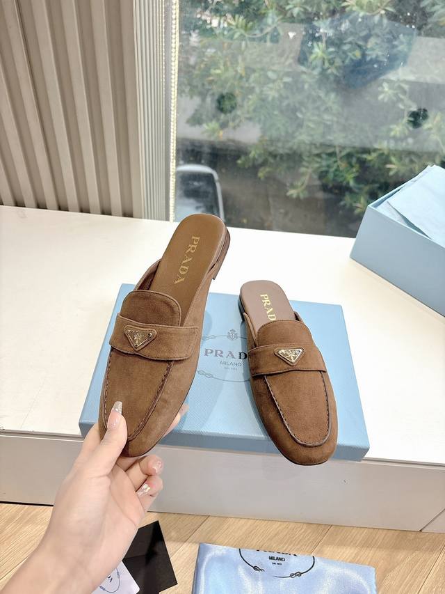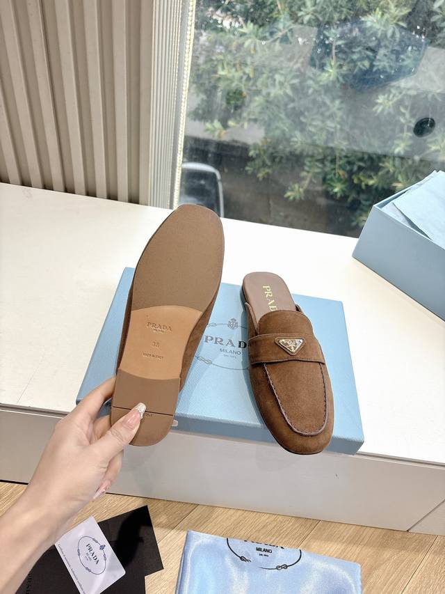 G0286Prada普拉达2025最新春夏新款玛丽珍芭蕾平底包头穆勒鞋单鞋复古时髦鞋面,让整双鞋轻便舒适 鲜艳色彩 满足不同风格时髦人士的多种选择!标志性金属三角标夹脚拖鞋搭配古沙滩凉鞋造型,每一个设计元素都踩在时髦点上! 面料:进口磨砂 内里:进口羊皮内里 底厚:原版鞋底 码数:35-39 40定制不退不换