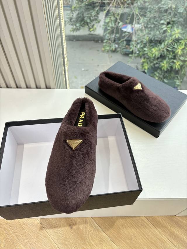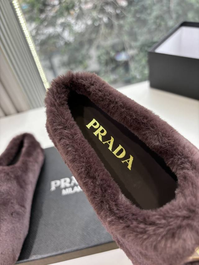 G036所见即所得代购级别市面最高版本 prada 普拉达秋冬新款△三角标一脚蹬羊毛鞋,厚底靴 雪地靴 双色擦色牛绒真羊羔毛棉靴雪地靴真皮沿条 双色Tpu大底 材质细节可对比原版,市面普通版本区分请认准我们的顶级品质羊羔毛颗粒饱满保暖效果Yyds DDD 鞋面:进口羊毛 DDD 内里:进口颗粒羊羔毛 DDD 鞋底:原版开模鞋底 DDD Size:35-39 40 41定做不退换 DDD