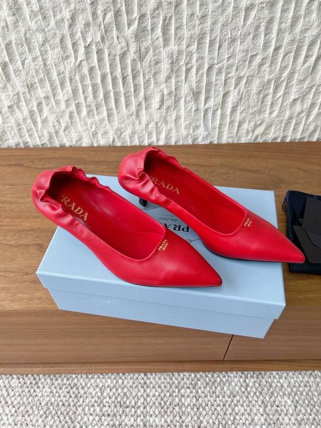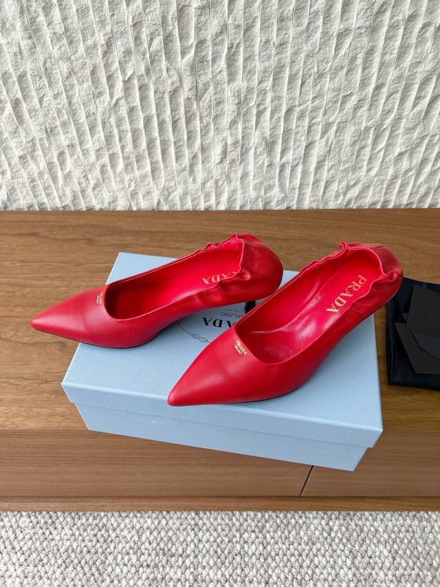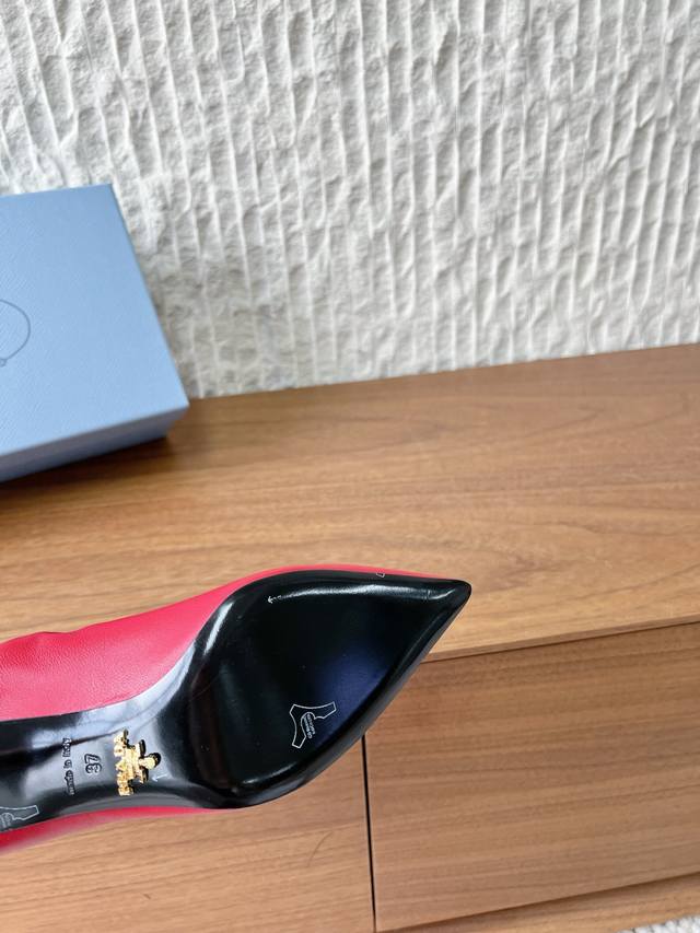 G089 Prada 普拉达 26Ss早春新款 尖头 高跟鞋 单鞋 DDD 这款高跟鞋配有逗号跟,鞋履重释Prada往昔的设计元素 DDD 用橡胶鞋底环绕鞋面,