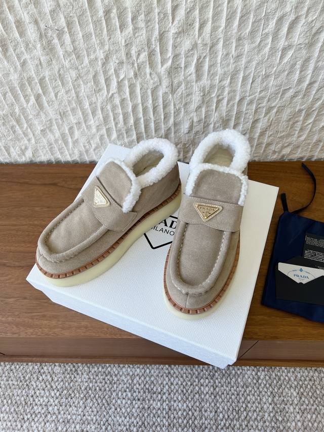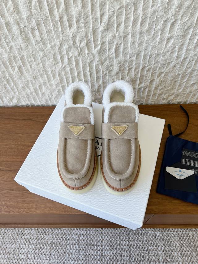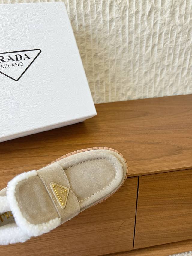 G292 prada 普拉达 25Ss秋冬新款三角扣厚底毛里休闲单鞋女 DDD 新款上架这款厚底系列,在欧美街拍中出境率超高,Ins也是火了一把,调鞋楦都调了一个月整体线条流畅性保持跟原版一致,真的太有魅力了,我相信有品味的女人会看上它,prad*A系列一向不会令人失望,女神的利器 DDD 面料:原版定制牛猄 DDD 内里:原版定制羊羔毛 DDD 垫脚:原版定制羊羔毛 DDD 大底:原版开模Tpu注塑成型底真皮沿条组合 DDD 底厚:4Cm DDD 码数:35-39 40.41.定做不退换 DDD 包装: