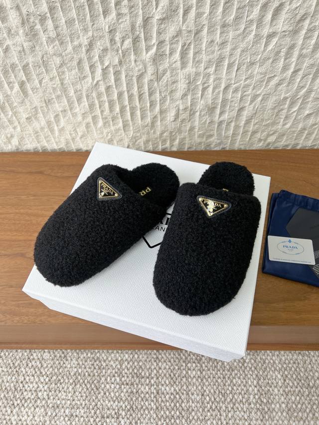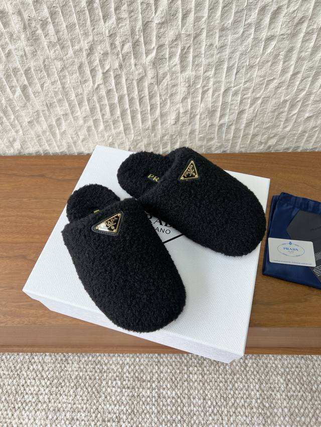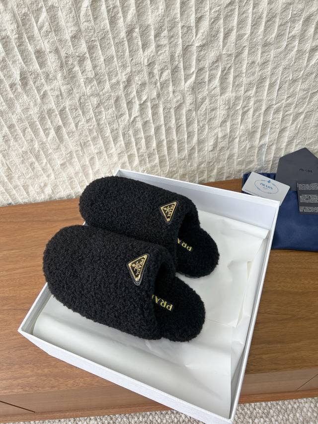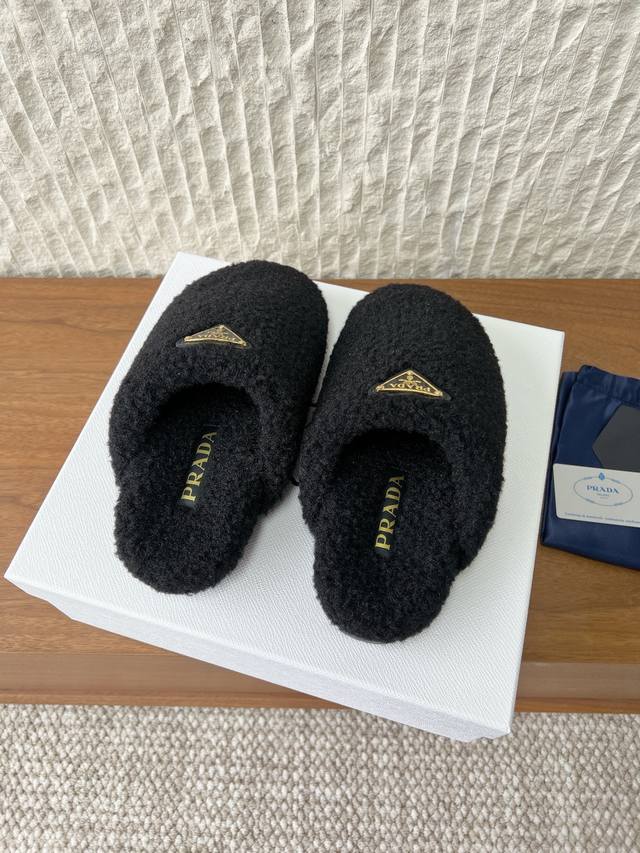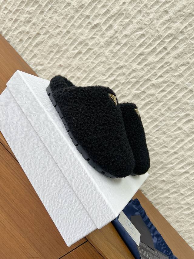 G292 prada 普拉达 25Ss秋冬新款三角扣毛毛拖鞋女 DDD 新款上架这款厚底系列,在欧美街拍中出境率超高,Ins也是火了一把,调鞋楦都调了一个月整体线条流畅性保持跟原版一致,真的太有魅力了,我相信有品味的女人会看上它,prad*A系列一向不会令人失望,女神的利器 DDD 面料:原版定制羊织毛 DDD 内里:原版定制羊织毛 DDD 垫脚:原版定制羊织毛 DDD 大底:原版开模Tpu注塑成型底 DDD 底厚:1.0Cm DDD 码数:35-39 40.41.定做不退换 DDD 包装:原版全套包装