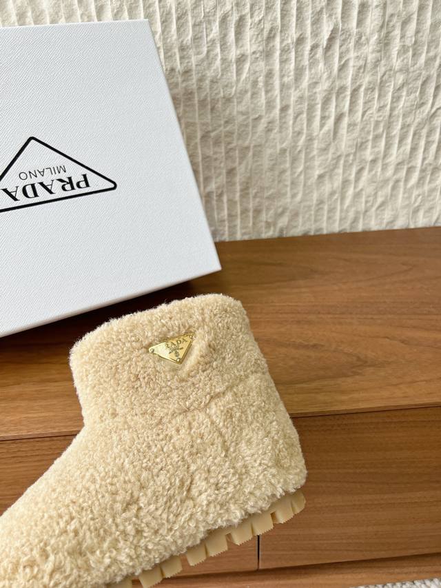 G292 prada 普拉达 25Ss秋冬新款三角扣毛毛短靴女 新款上架这款厚底系列,在欧美街拍中出境率超高,Ins也是火了一把,调鞋楦都调了一个月整体线条流畅