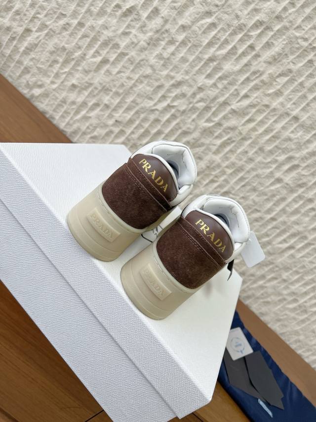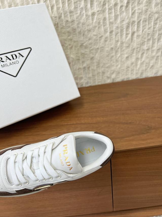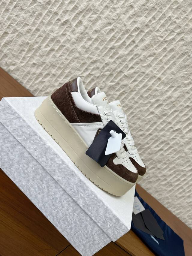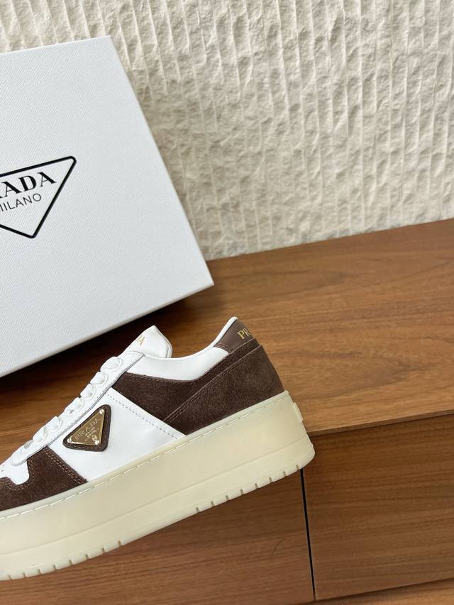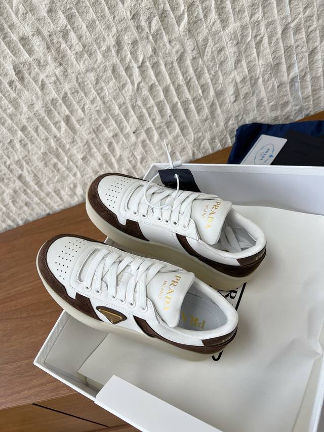 G292 prada 普拉达 25Ss秋冬新款 Downtown Bold系列 厚底 三角标 休闲 小白鞋 运动风设计搭配精致细节。采用穿孔皮革打造,个性的厚底