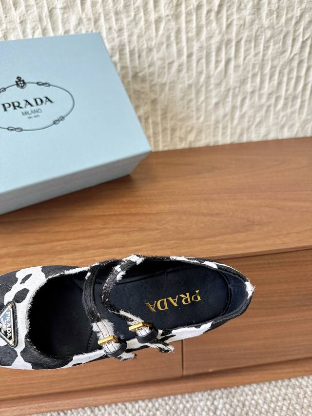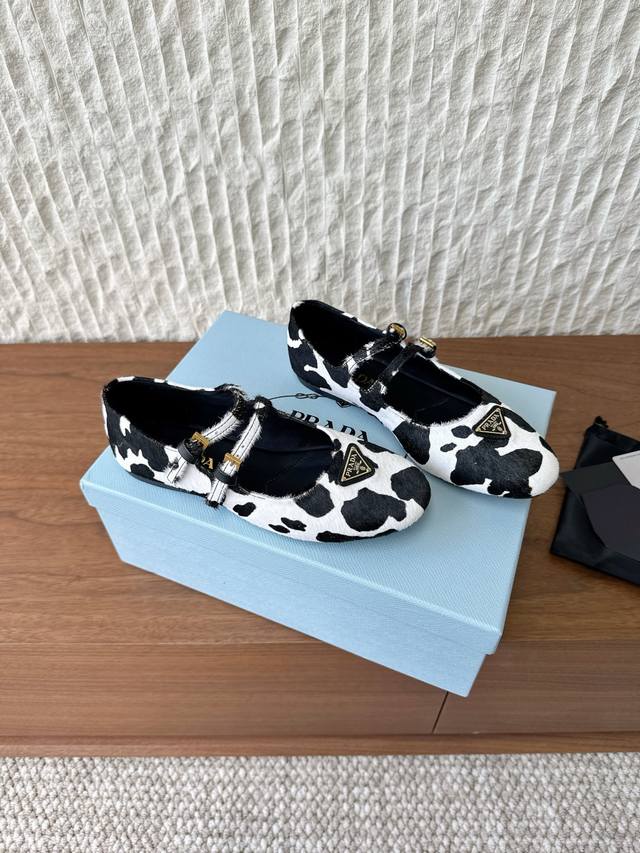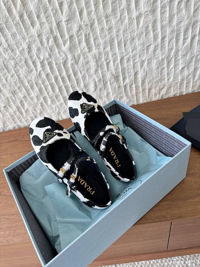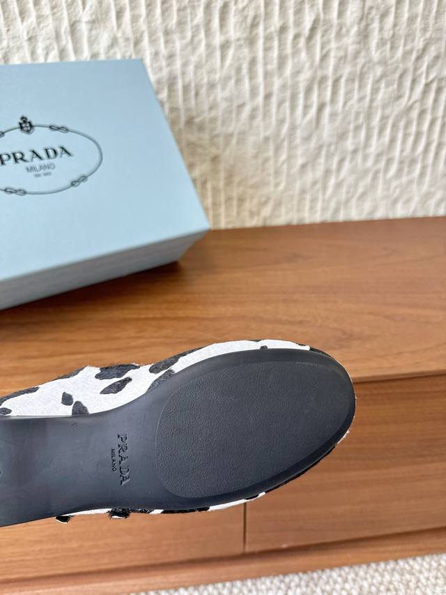 G716 Prada 普拉达 25Ss秋冬新款 奶牛马毛平底 单鞋 玛丽珍 芭蕾舞鞋 这款马毛芭蕾平底鞋以锥形轮廓展现出优雅魅力。采用圆头设计,经典线条搭配雅致