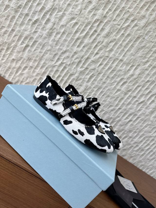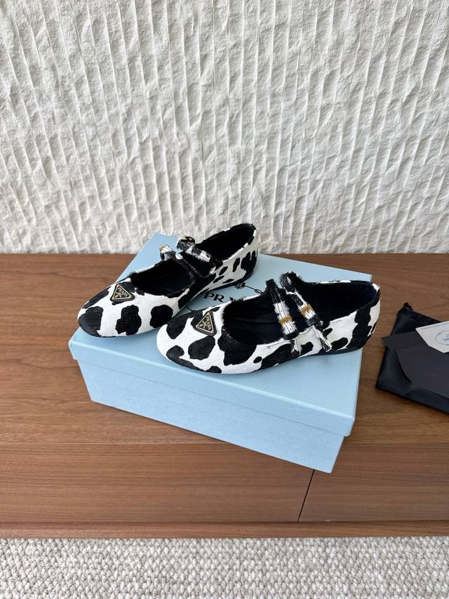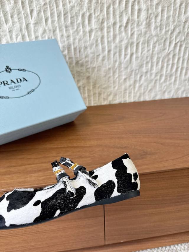 / G716 Prada 普拉达 25Ss秋冬新款 奶牛马毛平底 单鞋 玛丽珍 芭蕾舞鞋 这款马毛芭蕾平底鞋以锥形轮廓展现出优雅魅力。采用圆头设计,经典线条搭配雅致