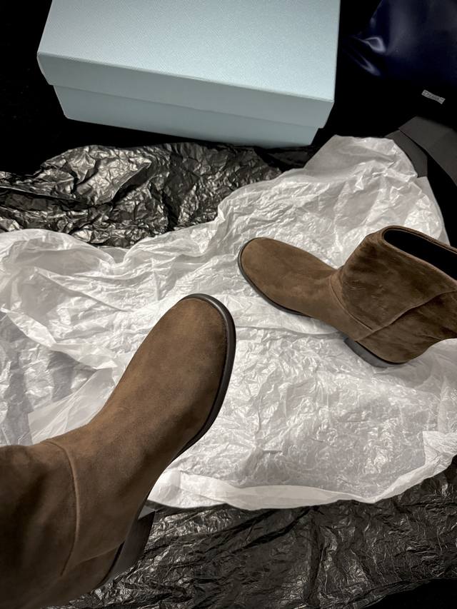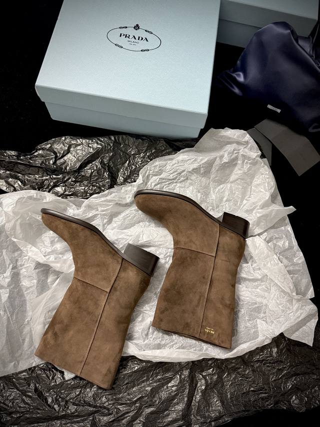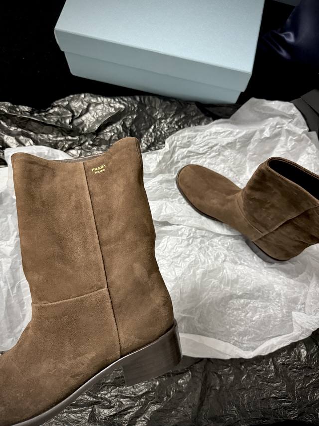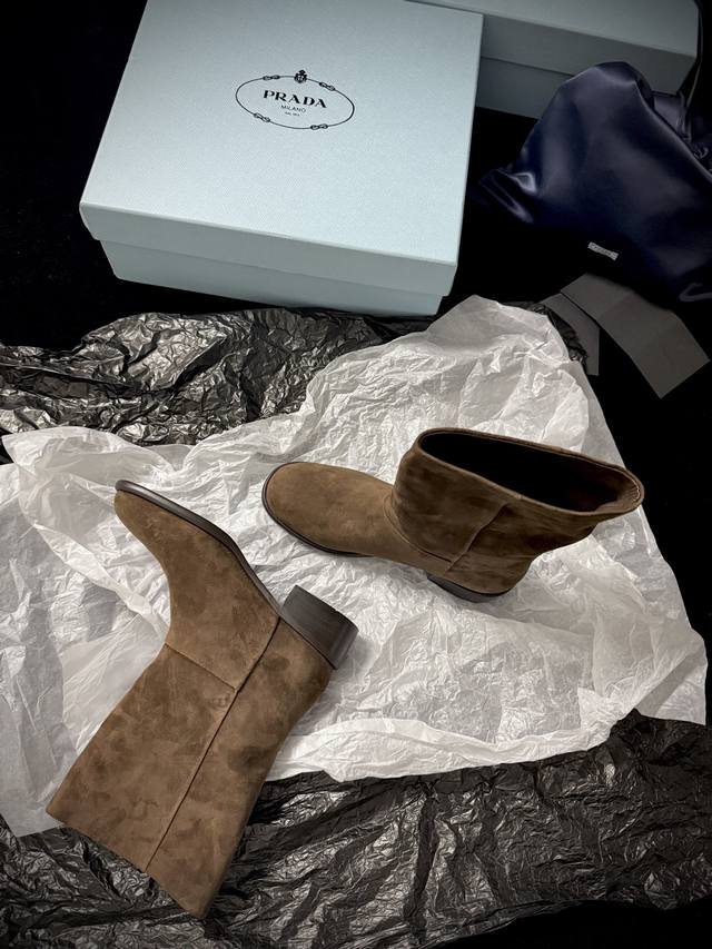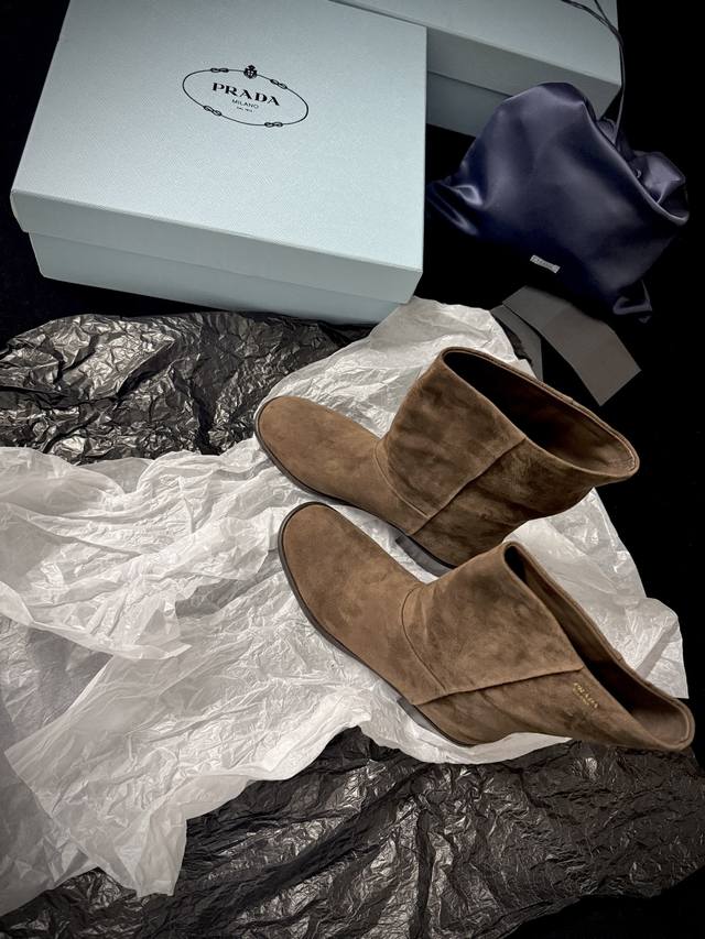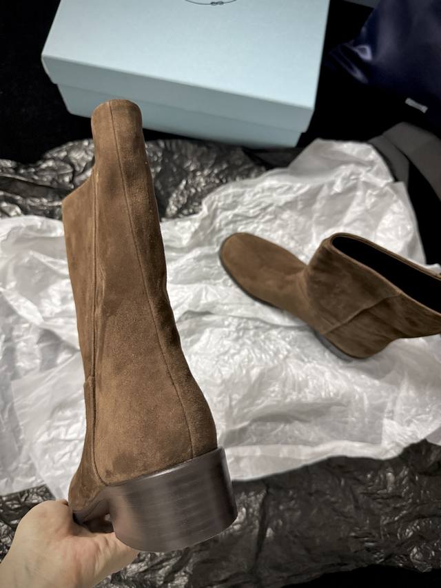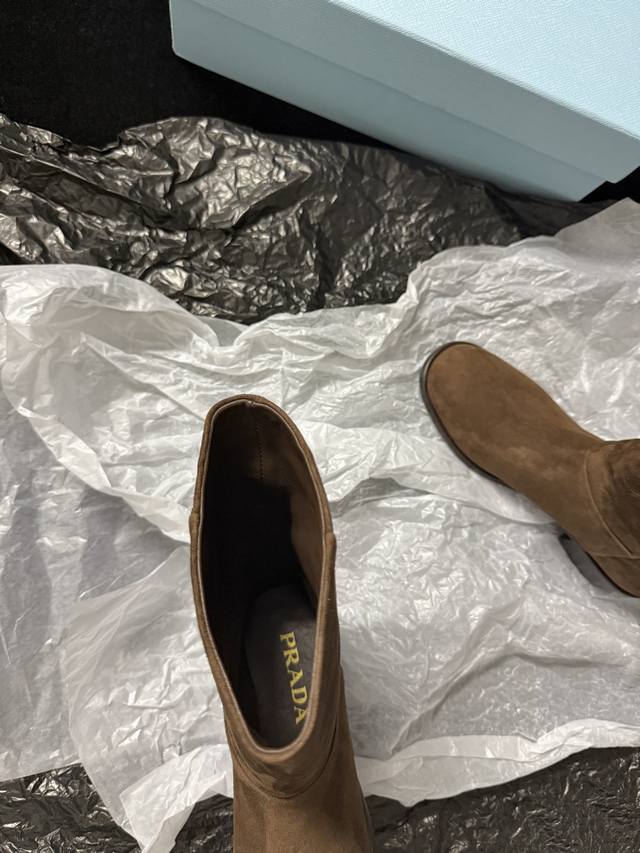 / Prad* 新品 把酷飒和高级感捏得死死的 麂皮黑调自带气场 利落靴型衬得腿型超好看 上脚一整个大女主既视感 秋冬出街 穿它就赢很大~ 鞋面进口麂皮 内里进口绵