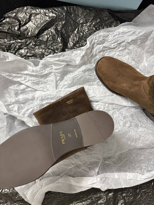 Prad* 新品 把酷飒和高级感捏得死死的 麂皮黑调自带气场 利落靴型衬得腿型超好看 上脚一整个大女主既视感 秋冬出街 穿它就赢很大~ 鞋面进口麂皮 内里进口绵羊皮 Zp开模大底 35-39 34.40.41定