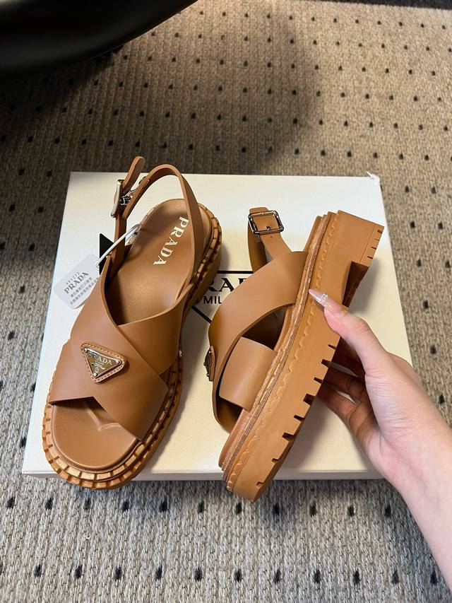 Prad* 普拉达25Ss新款交叉锯齿罗马厚底橡胶凉鞋 复古时髦前卫的轮齿厚底鞋底搭配橡胶鞋面让整双鞋轻便舒适 鲜艳色彩 满足不同风格时髦人士的多种选择!标志性Logo印花搭配古沙滩凉鞋造型,每一个设计元素都踩在时髦点上!让整双鞋轻便舒适 鲜艳色彩 满足不同风格时髦人士的多种选择!鞋面:Ip发泡软鞋面内里:牛皮大底:Tpu大底+真皮沿条Size:35-41码 40.41定制不退换