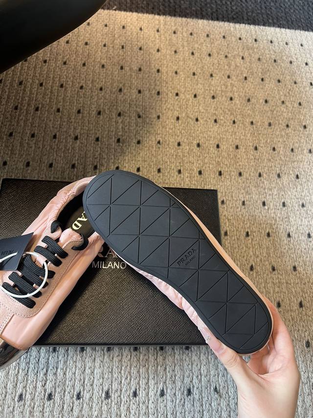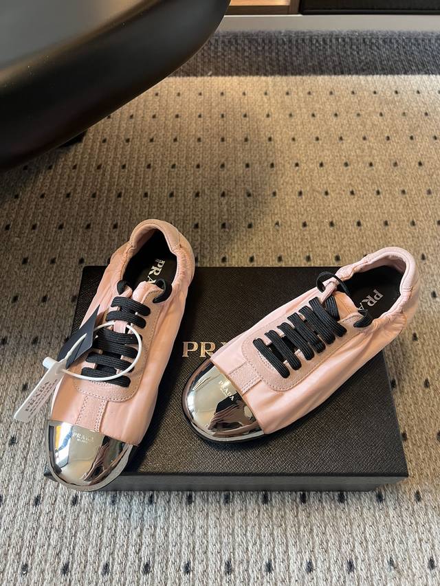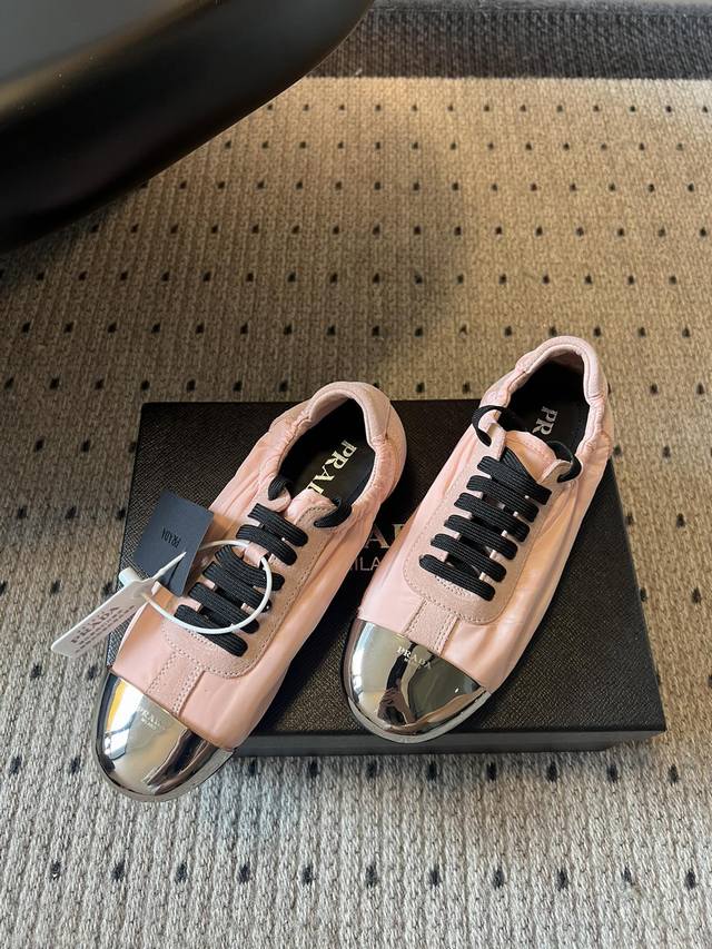 / Prad* 金属鞋头薄底德训鞋 休闲鞋 大底开模Tpu!不做橡胶!鞋面有肌理感,内里羊皮包裹,软软糯糯的.鞋垫加厚小羊皮,踩上去无比舒适,有支撑感,又包裹得很好