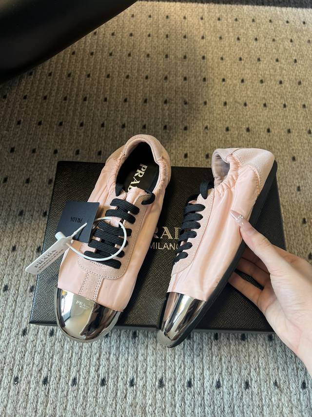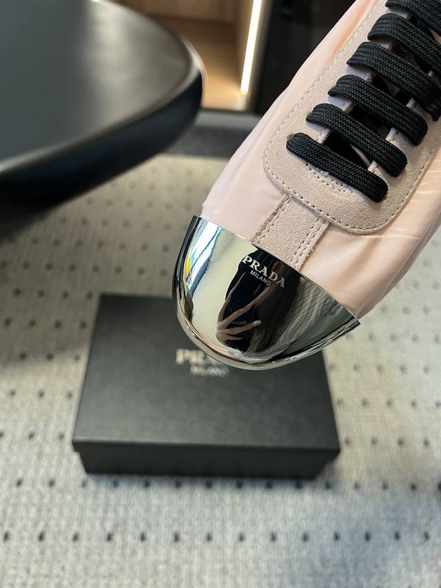 Prad* 金属鞋头薄底德训鞋 休闲鞋 大底开模Tpu!不做橡胶!鞋面有肌理感,内里羊皮包裹,软软糯糯的.鞋垫加厚小羊皮,踩上去无比舒适,有支撑感,又包裹得很好的感觉 鞋型包裹感十足,轻便好穿实用的一款休闲鞋,显高显大长腿! 鞋面:牛反绒 布 电镀开模 内里:羊皮 大底:Tpu大底 Size:35-41 40.41定制不退换