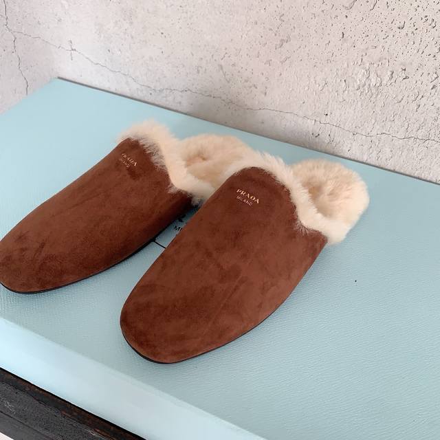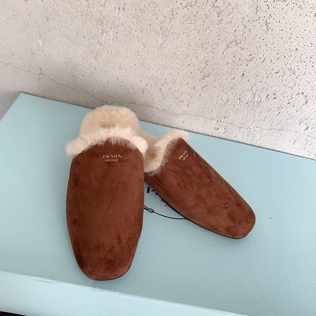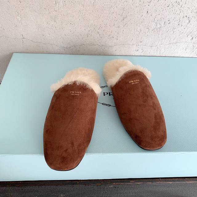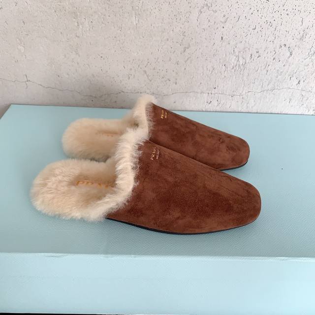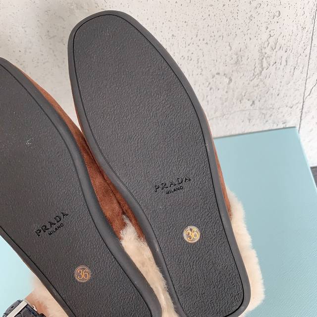 / Prad*2025早秋新款毛毛拖鞋,时髦单品 抢先必入,简约慵懒,你的凹造型法宝甄选进口皮毛一体羊毛,经多次特殊工艺处理 ,减少掉毛情况,私模防滑橡胶大底,码数
