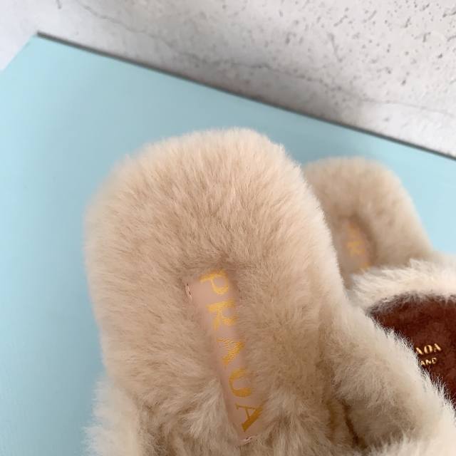 Prad*2025早秋新款毛毛拖鞋,时髦单品 抢先必入,简约慵懒,你的凹造型法宝甄选进口皮毛一体羊毛,经多次特殊工艺处理 ,减少掉毛情况,私模防滑橡胶大底,码数:35-39# 40#可订做不退换