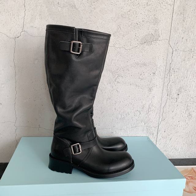 / Prad*2025秋冬新款复古百搭堆堆靴,超自然的叠堆感,实穿性很强的一款靴子,贯穿春秋冬三季,简约大气,松弛感满满对版树脂油膏小牛皮面料,水染牛皮内里,意大利