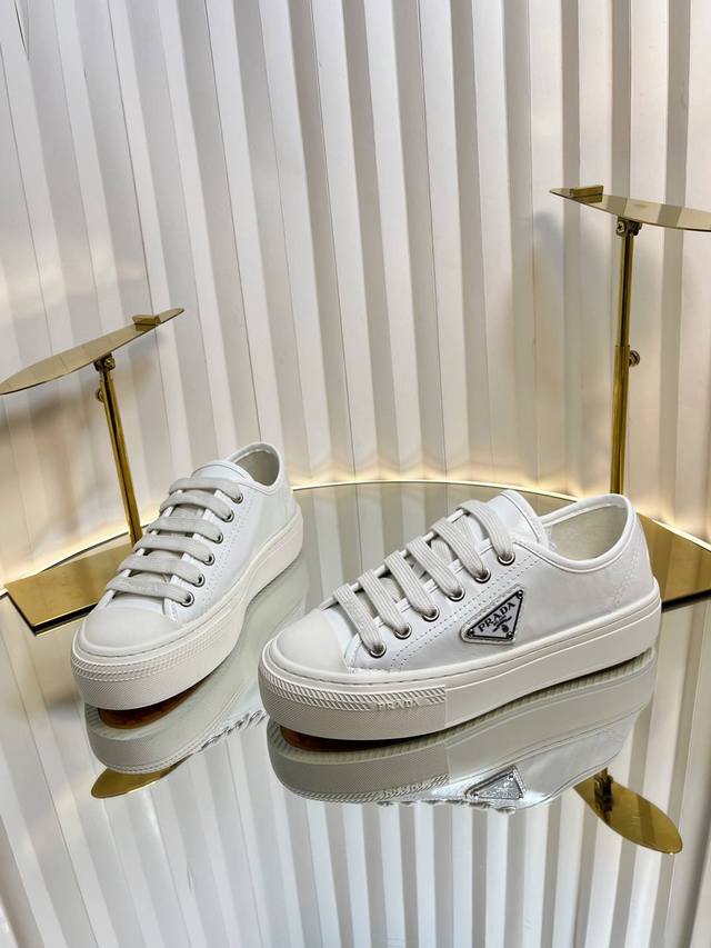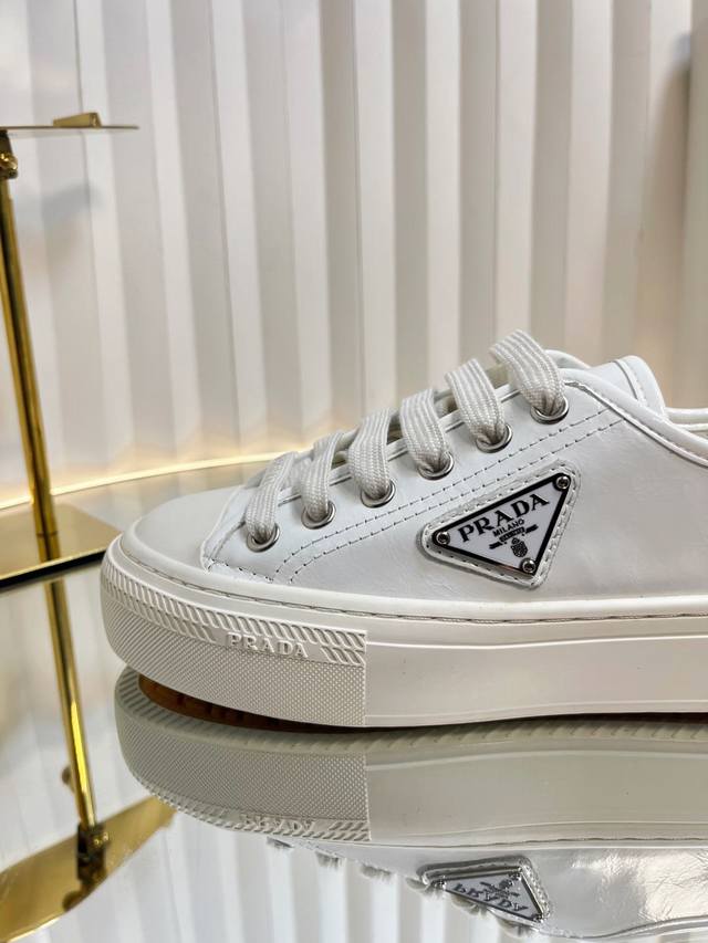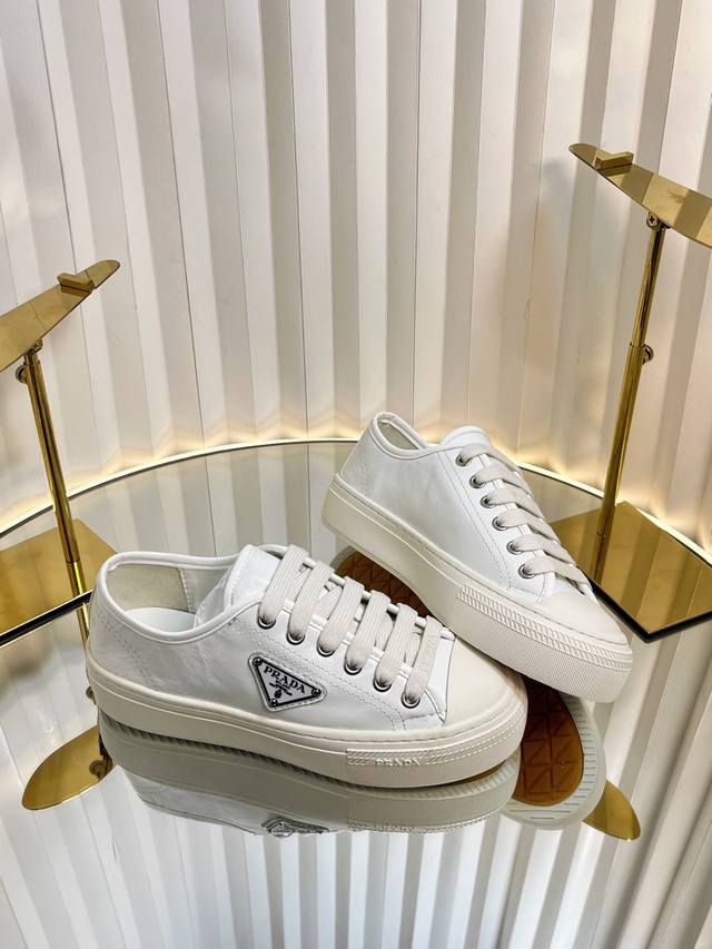 出 情侣款 Prada普拉达 24新款 厚底 小白鞋 休闲运动鞋...