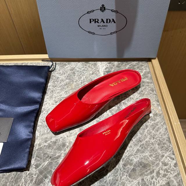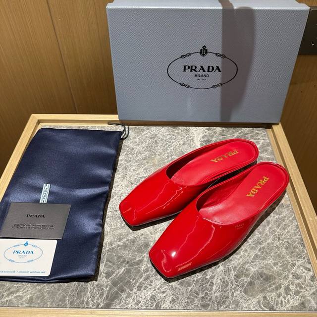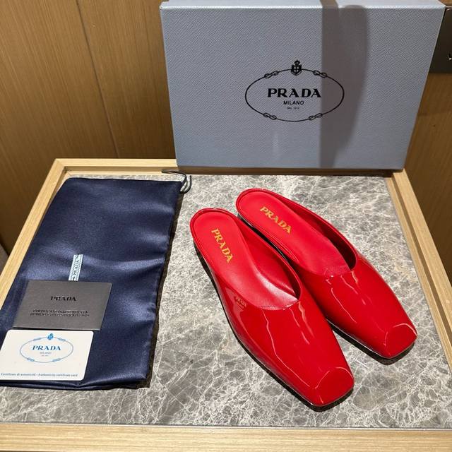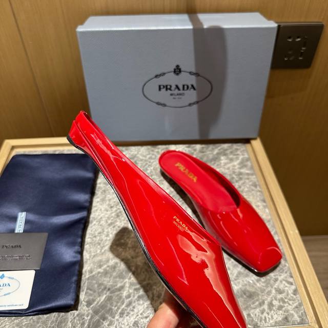/ Prada普拉达 25Ss早春新款 小红书各大博主推荐,1-1开发 彰显经典魅力。 开边朱牛皮,进口混种羊内里。 自然优雅的穆勒鞋采用亮面皮革鞋面搭配饰以徽标的