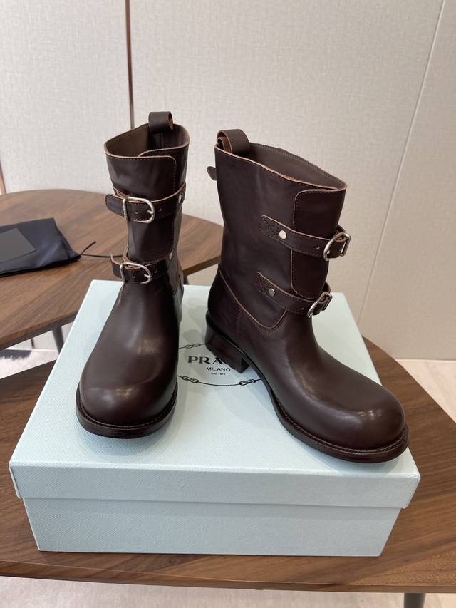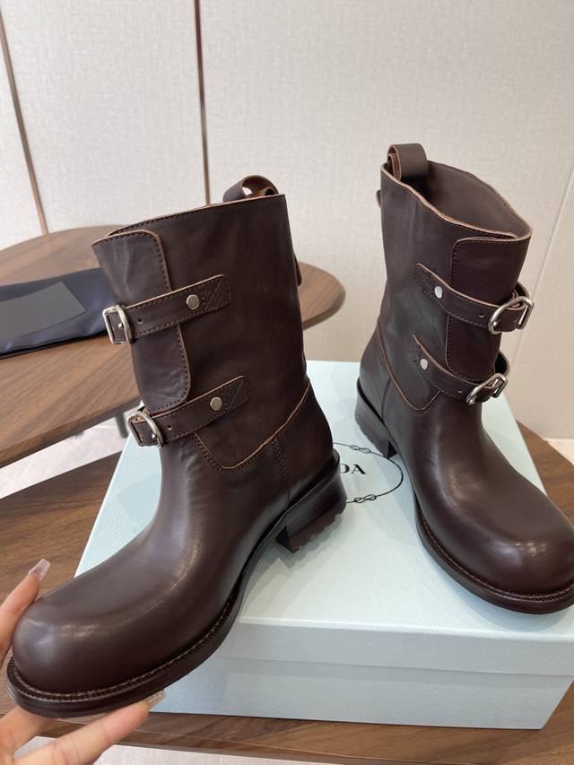 prada普拉达 25Ss 秋冬 复古西部牛仔靴 DDD 时尚机车马丁靴,独到味道,人人都爱也轻松驾驭 DDD 每年都会爆.还有就是百搭经典的鞋楦,足以征服你,穿上它,增高休闲两不失误,上脚简单帅气 DDD 面料进口小牛皮 内里垫脚透染羊皮 柔软细腻,脚感舒适, 意大利真皮大底防滑橡胶大底组合 DDD Size:#35-40 40订做不退换 DDD