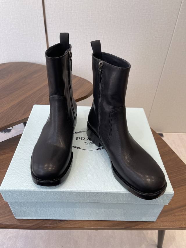 prada普拉达 25Ss 秋冬 复古西部牛仔靴 DDD 时尚机车马丁靴,独到味道,人人都爱也轻松驾驭 DDD 每年都会爆.还有就是百搭经典的鞋楦,足以征服你,穿上它,增高休闲两不失误,上脚简单帅气 DDD 面料进口小牛皮 内里垫脚透染羊皮 柔软细腻,脚感舒适, 防滑橡胶大底 DDD Size:#35-40 40订做不退换 DDD