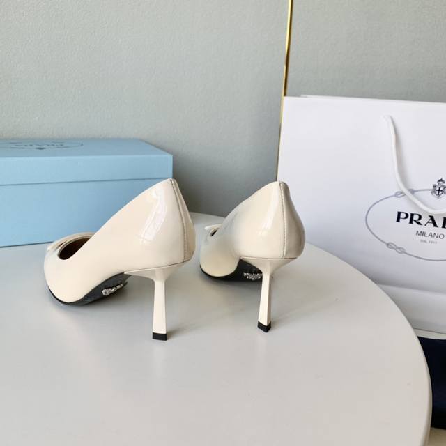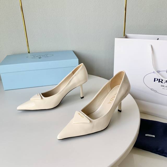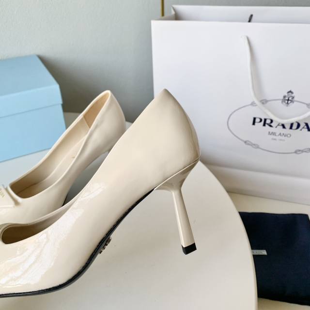 Prada普拉达23年新款金字三角标高跟单鞋 DDD 尖头酒杯跟高跟鞋 DDD 牛漆皮 羊皮里 牛皮底 DDD 跟高:7.5Cm DDD 正码:34-41 DD