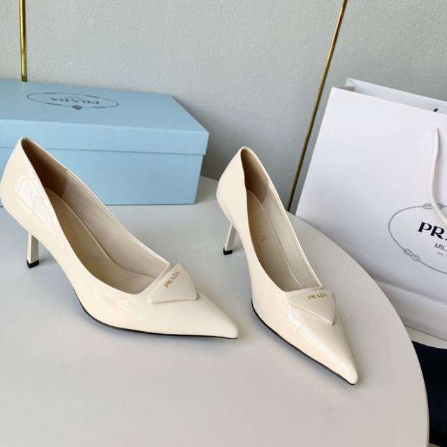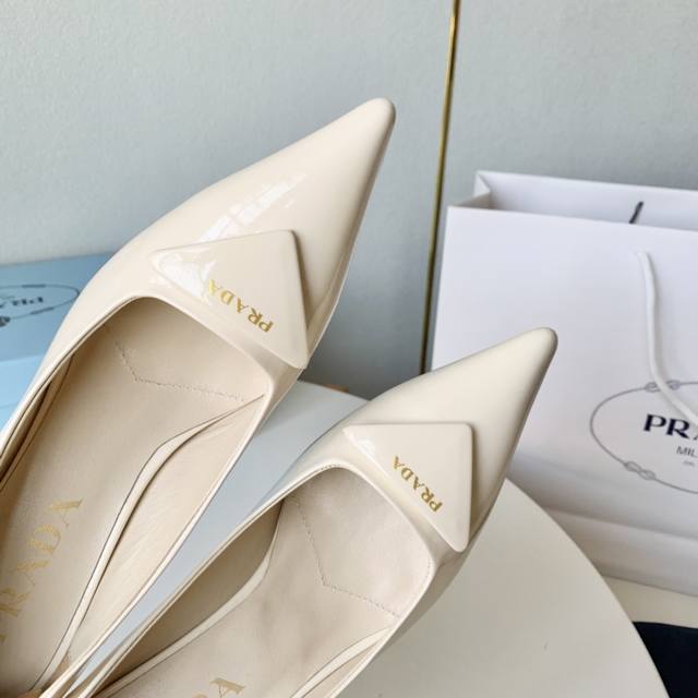 / Prada普拉达23年新款金字三角标高跟单鞋 DDD 尖头酒杯跟高跟鞋 DDD 牛漆皮 羊皮里 牛皮底 DDD 跟高:7.5Cm DDD 正码:34-41 DD