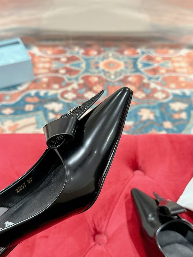 prada 普拉达最新春季新品,实力来袭!当红巨星同款凉鞋,时髦百搭Nice单品 这款亮面皮革将prada的典藏设计加以重释,营造出融柔美的尖头廓形。 春夏系列别出心裁跟彰显复古风情。 Ddd 面料:开边珠 Ddd 内里:羊皮 Ddd 鞋底:真皮大底 Ddd 跟高:5.5Cm Ddd Size:35-39 40定制 不退换 DDD