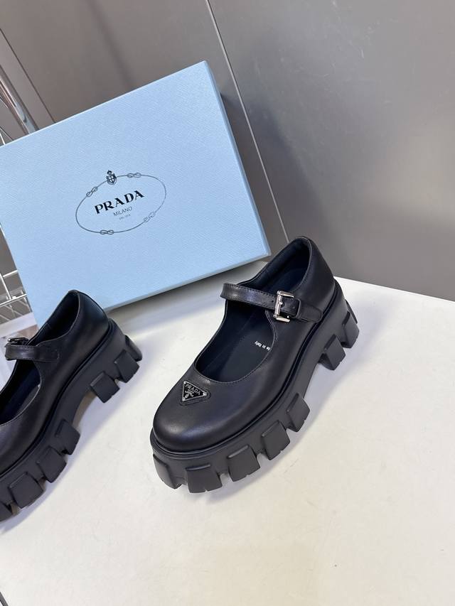 prada 普拉达最新款三角标厚底 玛丽珍乐福鞋皮鞋 超多明星网红种草 绝对是今年的大爆款贼好看 简约的鞋面设计 极具品牌辨识度的三角标点缀 细节拉满 上脚大气