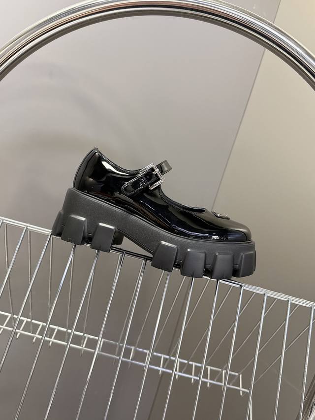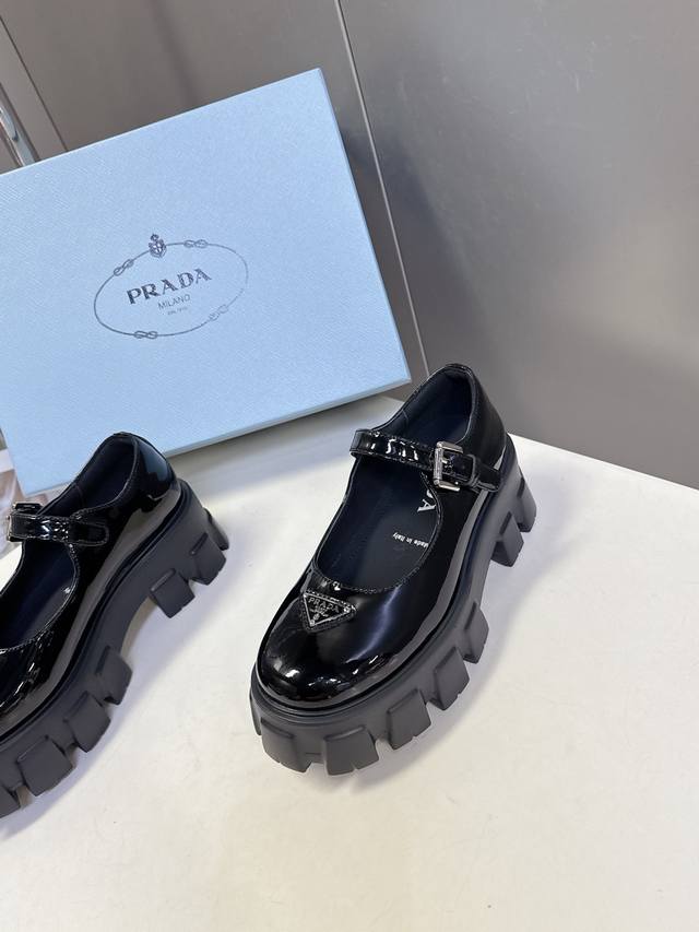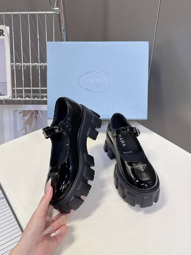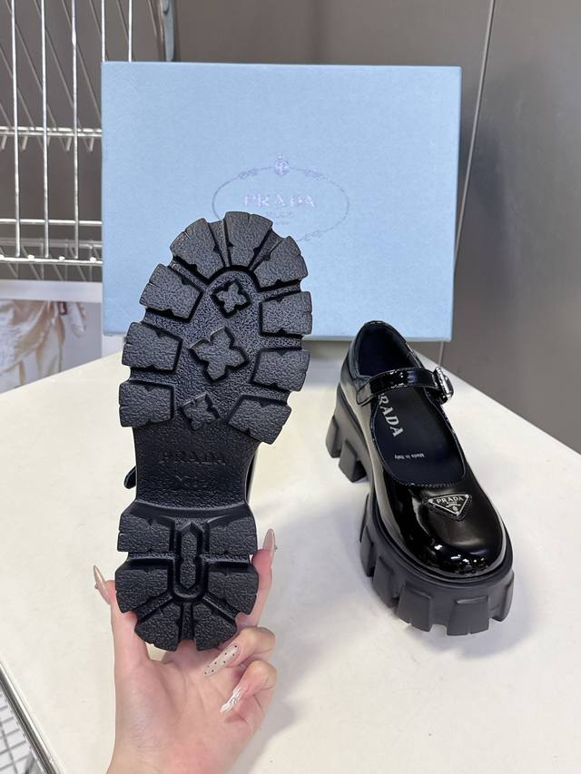 prada 普拉达最新款三角标厚底 玛丽珍乐福鞋皮鞋 Ddd 超多明星网红种草 绝对是今年的大爆款贼好看 简约的鞋面设计 极具品牌辨识度的三角标点缀 细节拉满 上脚大气显腿瘦气质这块刚好拿捏 大底高度6Cm 瞬间拉高身高 妥妥的增高神器 全系列采用多种进口材料:开边珠漆皮小牛皮 内里混种羊皮 原版组合橡胶大底轻便舒适 Size:35-41 40 41 订做不退换 DDD