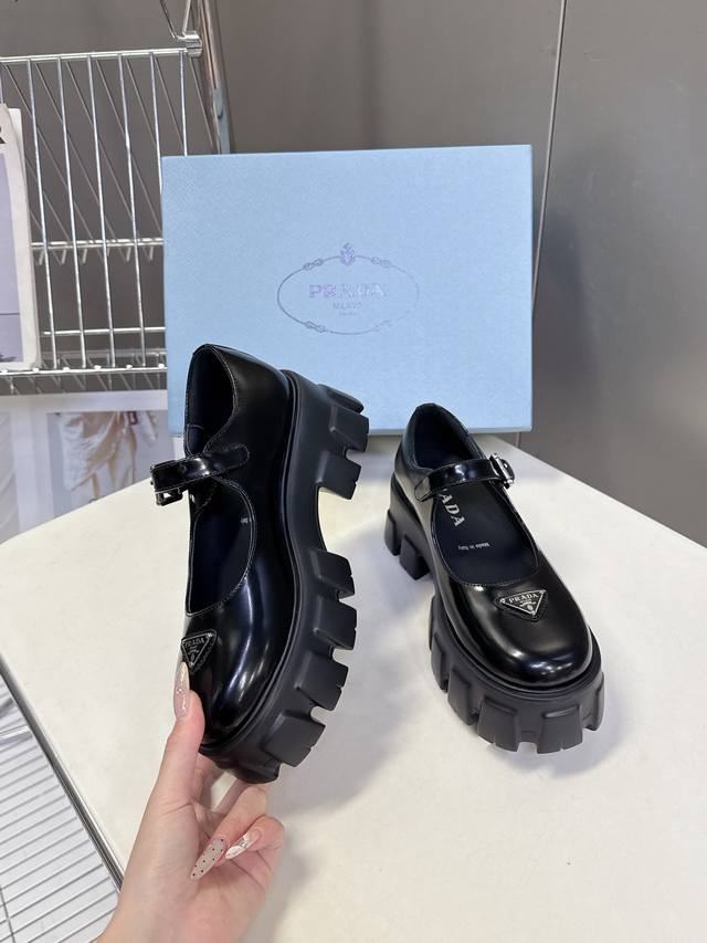 Prada 普拉达最新款三角标厚底 玛丽珍乐福鞋皮鞋 DDD 超多明星网红种草 绝对是今年的大爆款贼好看 简约的鞋面设计 极具品牌辨识度的三角标点缀 细节拉满