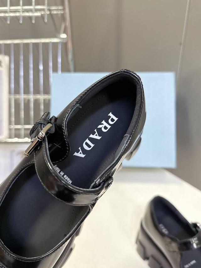 FFF Prada 普拉达最新款三角标厚底 玛丽珍乐福鞋皮鞋 DDD 超多明星网红种草 绝对是今年的大爆款贼好看 简约的鞋面设计 极具品牌辨识度的三角标点缀 细节拉满 上脚大气显腿瘦气质这块刚好拿捏 大底高度6Cm 瞬间拉高身高 妥妥的增高神器 全系列采用多种进口材料:牛京开边珠漆皮小牛皮 内里混种羊皮 原版组合橡胶大底轻便舒适 Size:35-41 40 41 订做不退换 DDD
