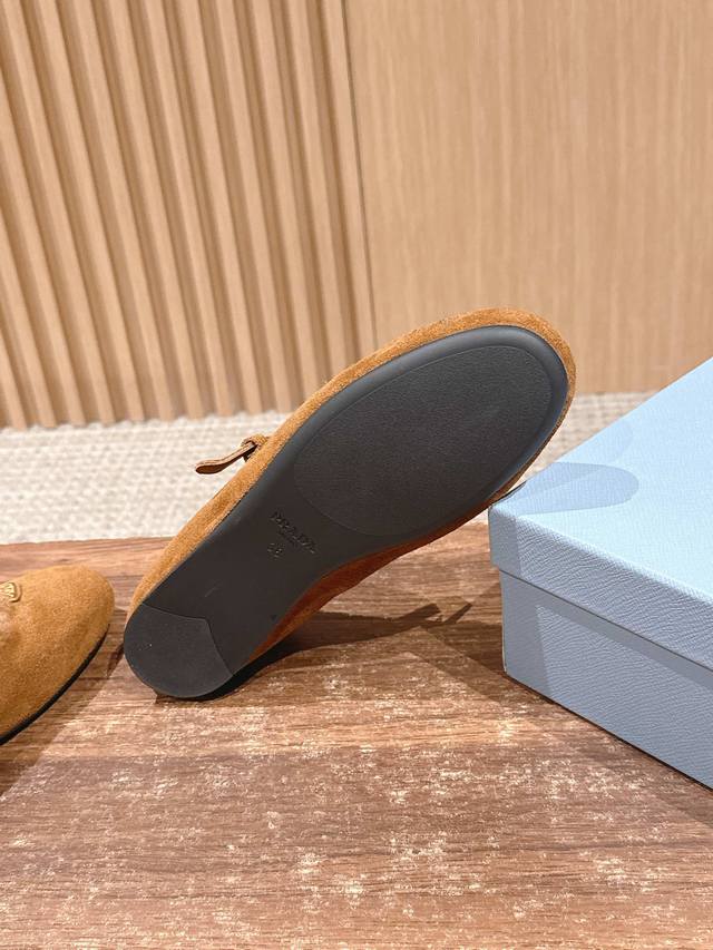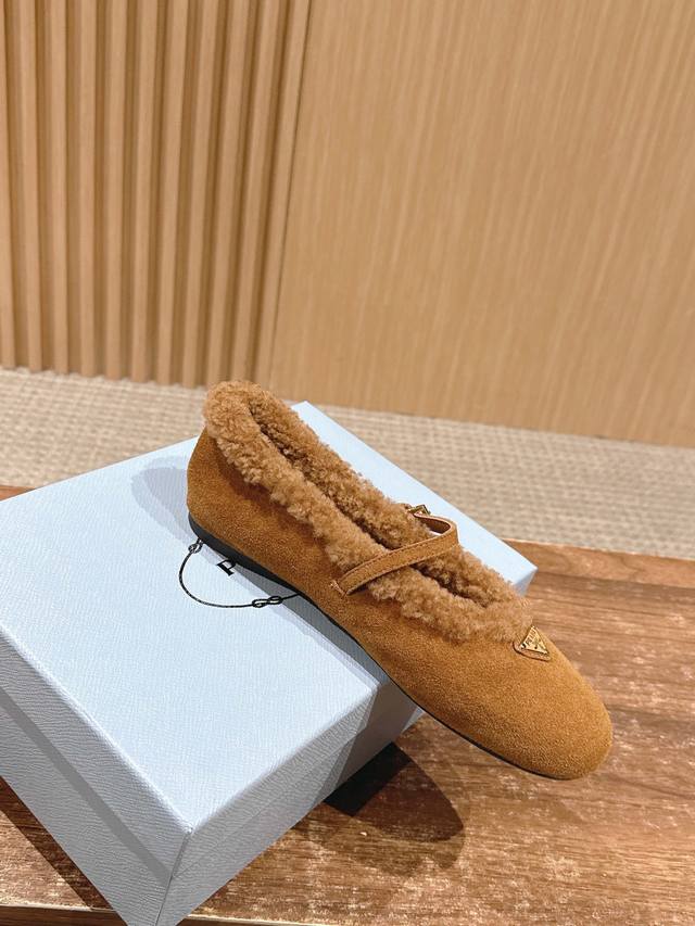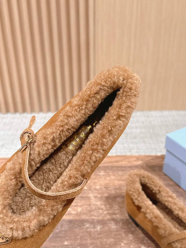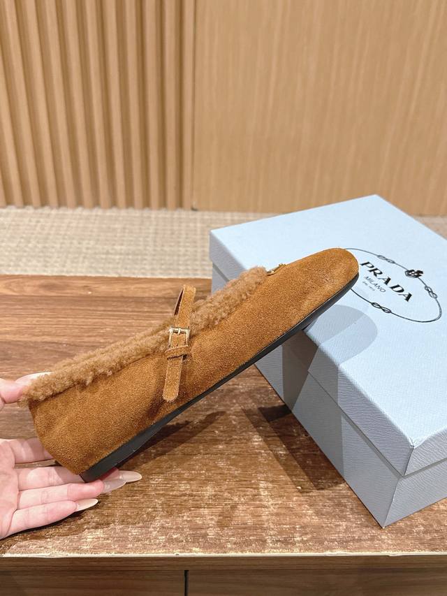prada 普拉达秋冬新款毛毛鞋玛丽珍平底鞋 简约舒适又百搭 麂皮材质 羊羔毛内里 Size:35-39 40 41定制不退换