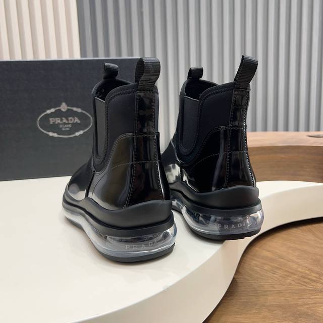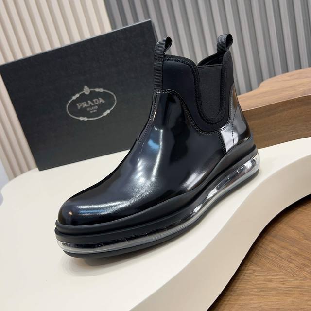 prada 普拉达 意大利秀场版 纯原男士高帮套脚气垫鞋 原厂超柔韧气垫大底 后跟银标prada字母Logo装饰 橡胶底层包裹 舒适度高 防滑性能极好 进口打蜡