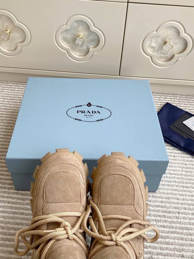 Prada 普拉达 新品三角标厚底羊毛短靴 雪地靴 材质与工艺: 原版定制进口小牛皮 牛京 170%真羊毛 保暖神器 Zp开模橡胶防滑大底 Size:35-39 40、41定做不退换