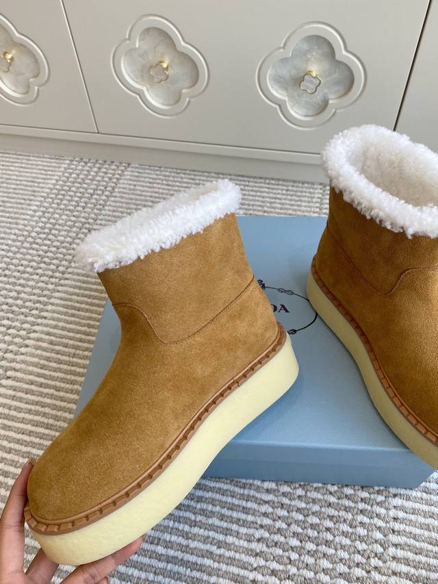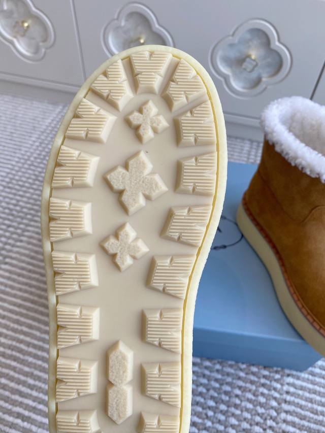 prada 普拉达 新品三角标厚底羊毛雪地靴 材质与工艺: 原版定制进口羊皮毛一体 160%真羊毛 保暖神器 Zp开模橡胶防滑大底 Size:35-39 40、