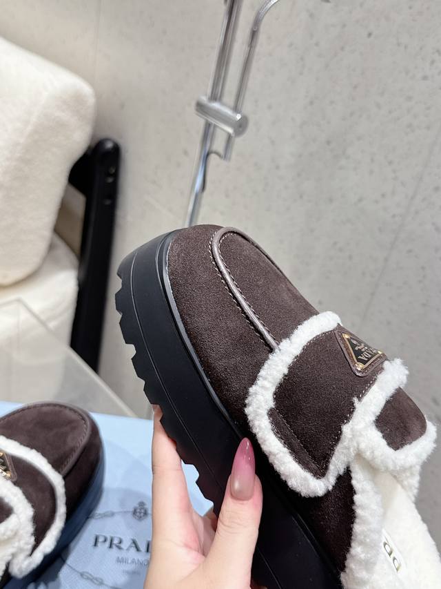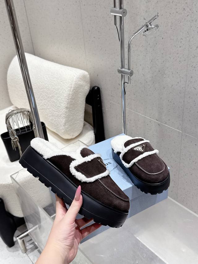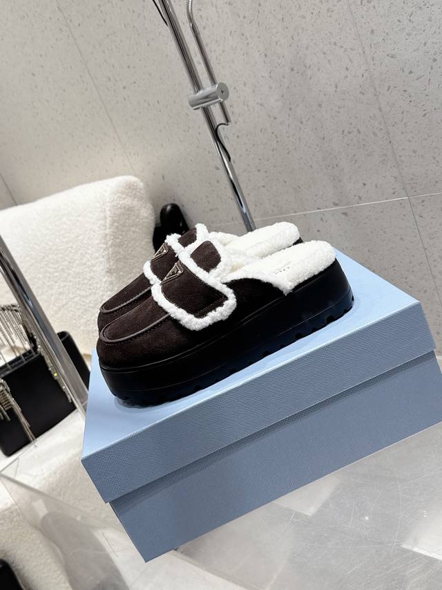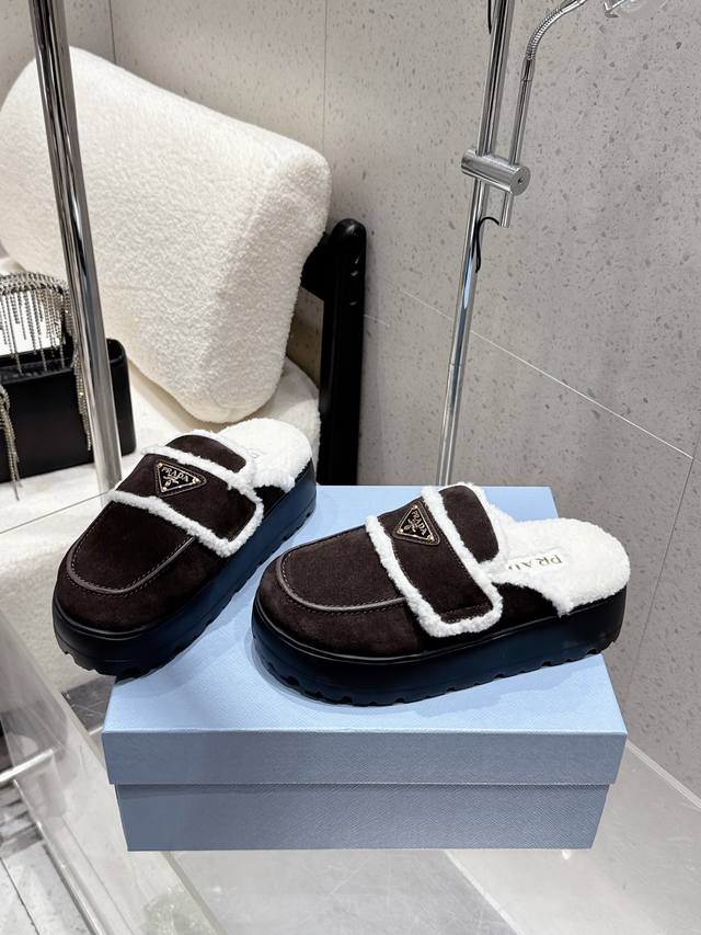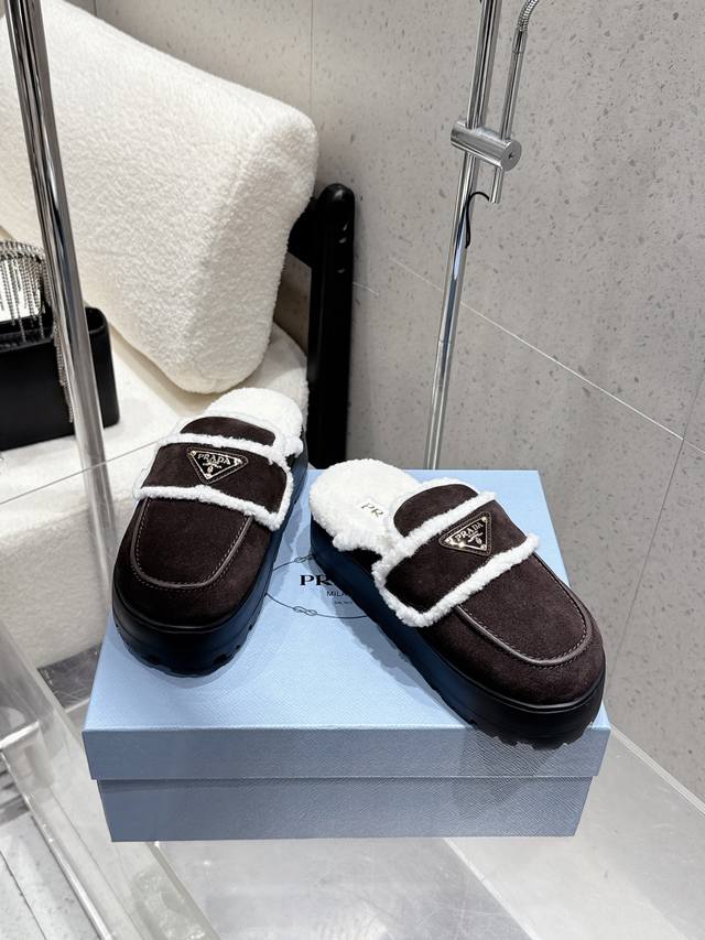 / Prada 普拉达 秋冬新款厚底包头毛毛拖鞋 半拖 最新走秀系列 经典升级 舒适度与时髦度并存 每个颜色搭配都好看,设计搭配不同风格需求 鞋面:原版定制牛猄 内