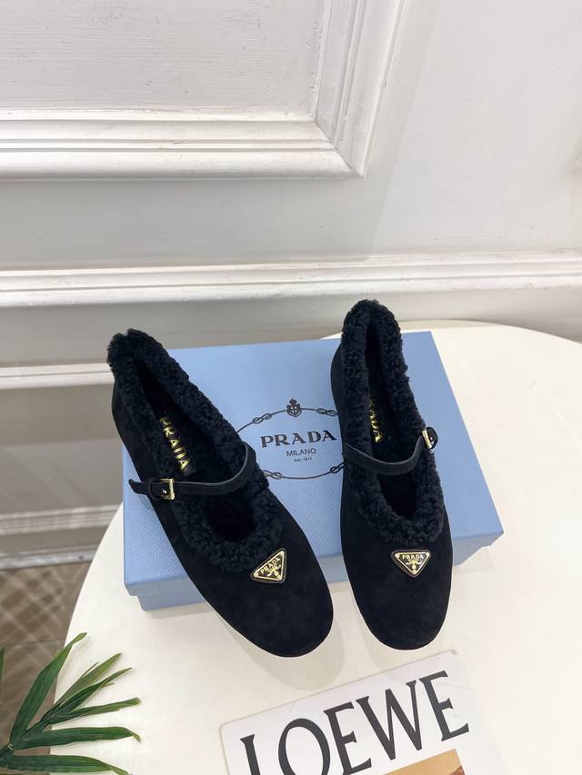 prada 普拉达 25 专柜走秀款2025秋冬新品 经典三角标玛丽珍毛毛鞋系列 鞋面:高定制进口牛京 内里:进口羊毛 大底:原版开模防滑大底 跟高:平底 鞋码